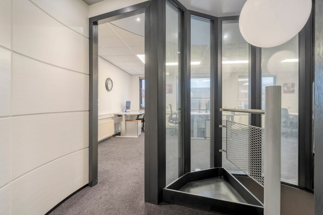 Ook een woon-/werklocatie behoort mogelijk tot de opties. Zo zou de verdieping kunnen worden getransformeerd tot woonruimte/appartement, terwijl de begane grond in gebruik blijft als kantoor. De bovenverdieping is daarbij relatief eenvoudig separaat toegankelijk te maken via een entree van het naastgelegen appartementencomplex waar deze kantoorruimte onderdeel van uitmaakt.