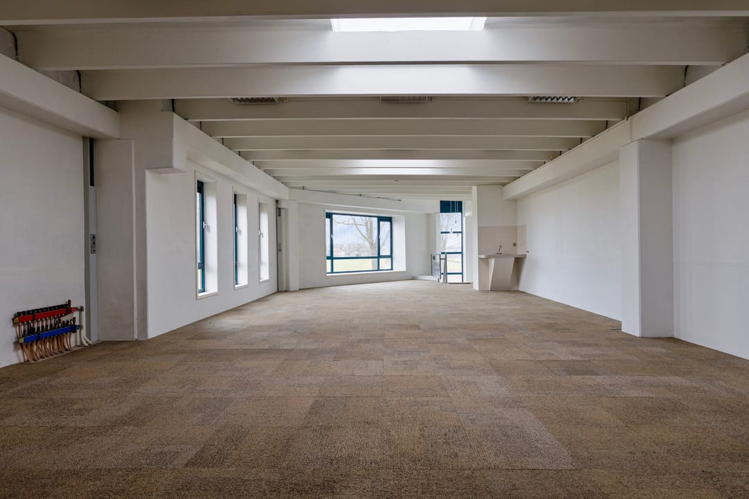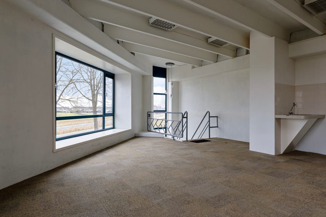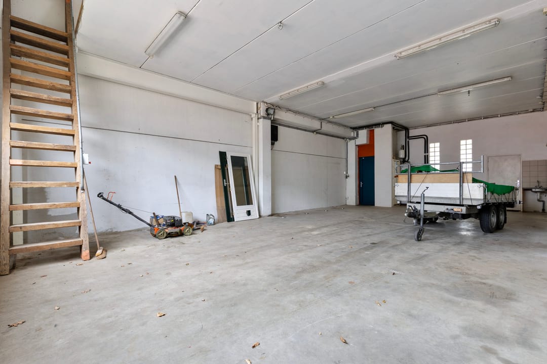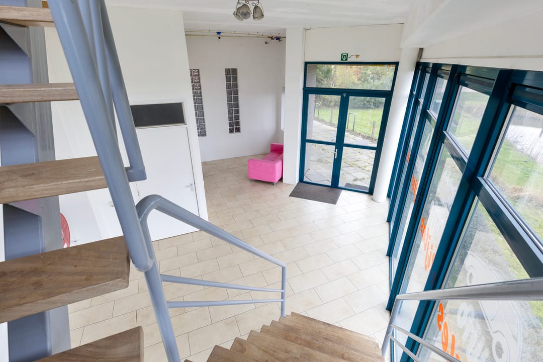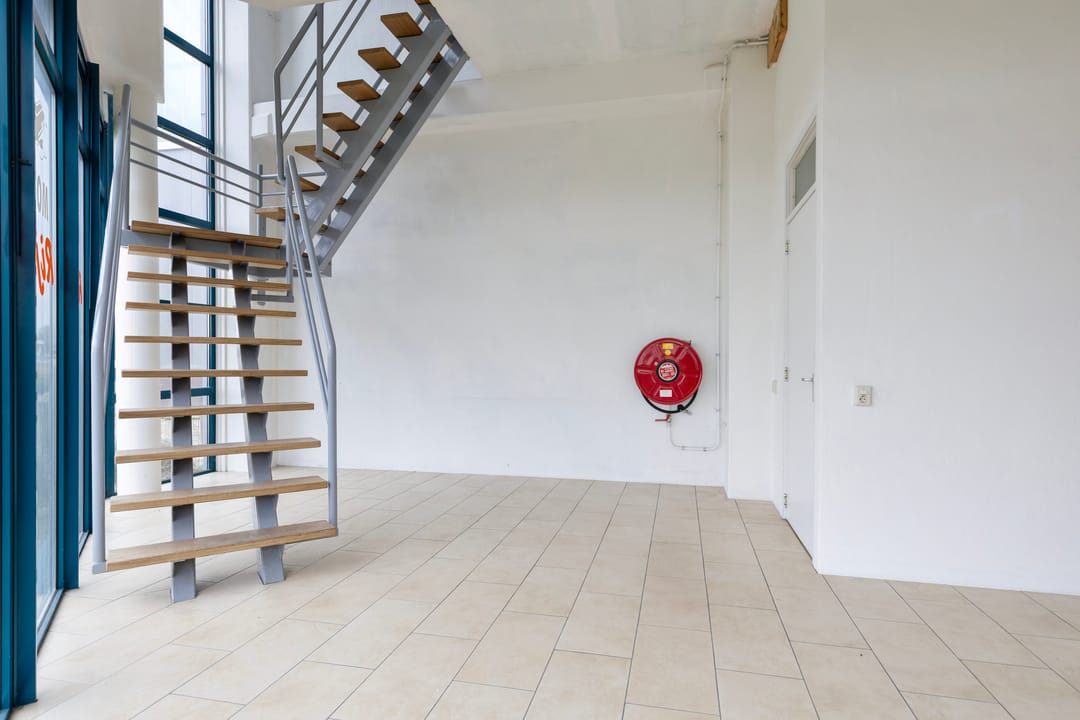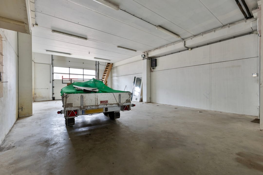 Bij binnenkomst middels de overheaddeur treft u de bedrijfsruimte op de begane grond, voorzien van een pantry. Tevens is er een entresol (ca. 30m2) welke middels een trap in de bedrijfsruimte te bereiken is. Vanuit de bedrijfsruimte bereikt u aan de voorzijde een nette keuken, een kantoorkamer en de entree hal met ingang aan de voorzijde.