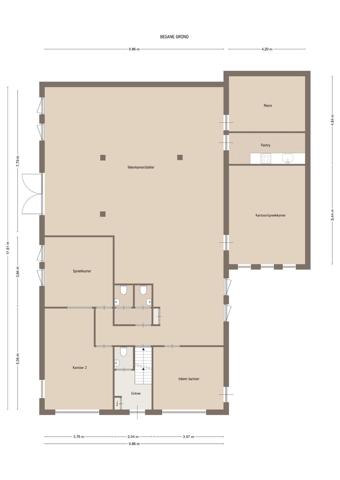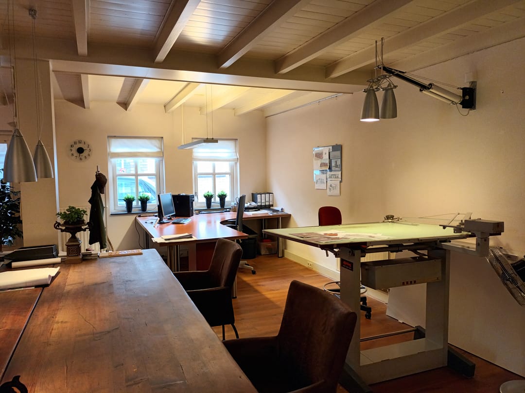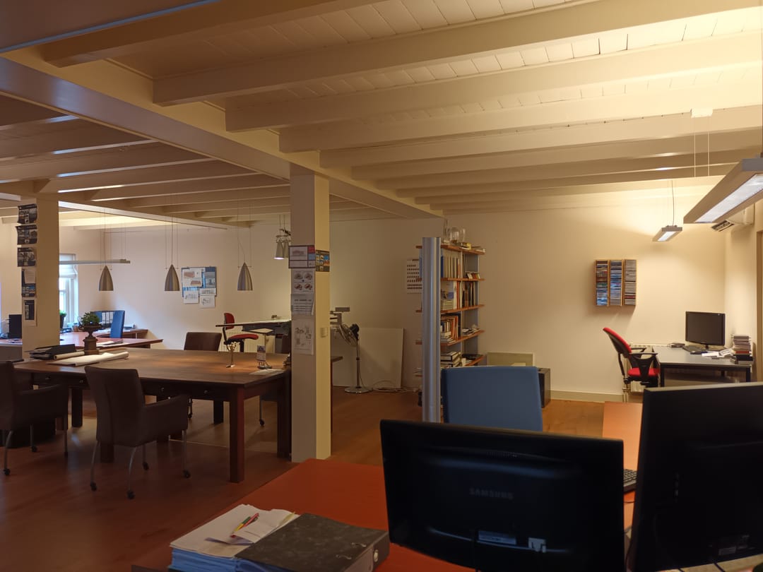 Bureau van Zeist heeft hier jarenlang hun visie op ruimte en design vormgegeven, en dit kantoor biedt nu de perfecte ruimte voor een ondernemer, kunstenaar of professional die op zoek is naar een inspirerende werkplek.