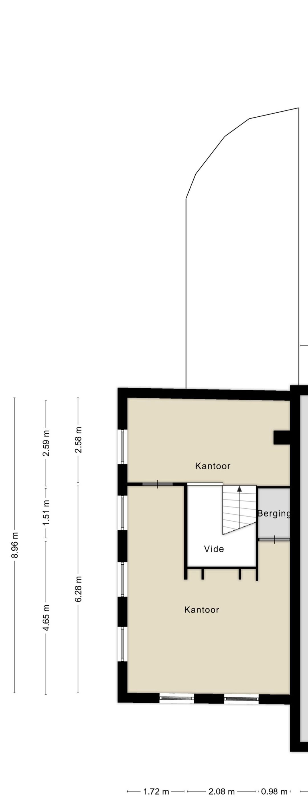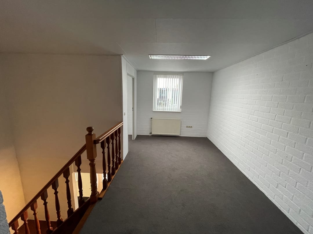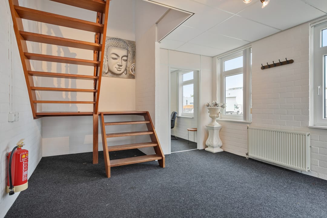 In de centrale hal vindt u tevens een fraaie hard houten trapopgang naar de 1ste verdieping. Deze is ingedeeld als wachtruimte en (3de) kantoor.