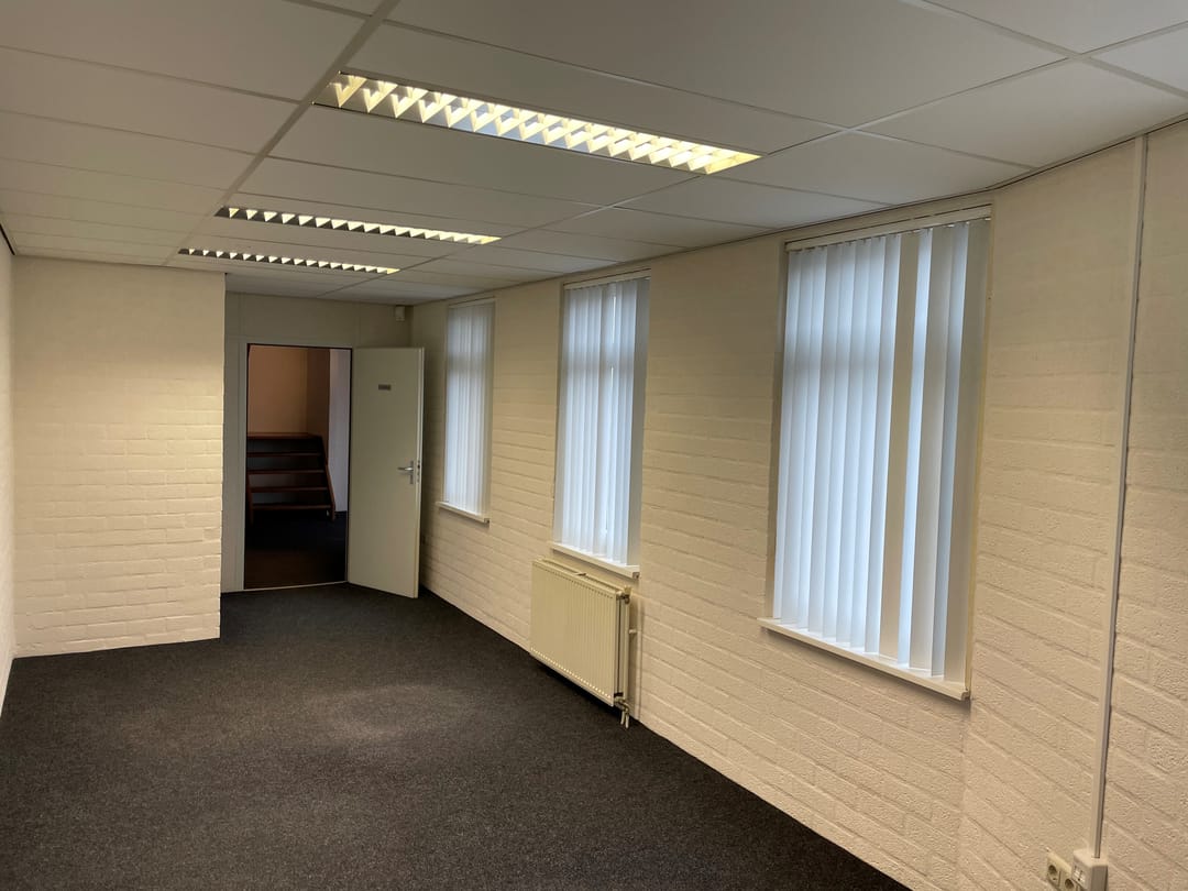 Begane grond: Entree, centrale hal met vloertapijt en systeemplafond. Aansluitend vindt u het toilet, de meterkast en twee kantoren/showrooms. Deze ruimtes hebben veel raampartijen zodat er voldoende daglicht is, hetgeen zorgt voor een goed arbeidsklimaat. Verder zijn deze ruimtes ingericht met een vloertapijt, systeemplafond en lichte wandafwerking.