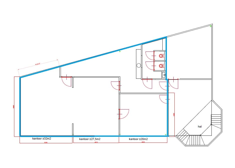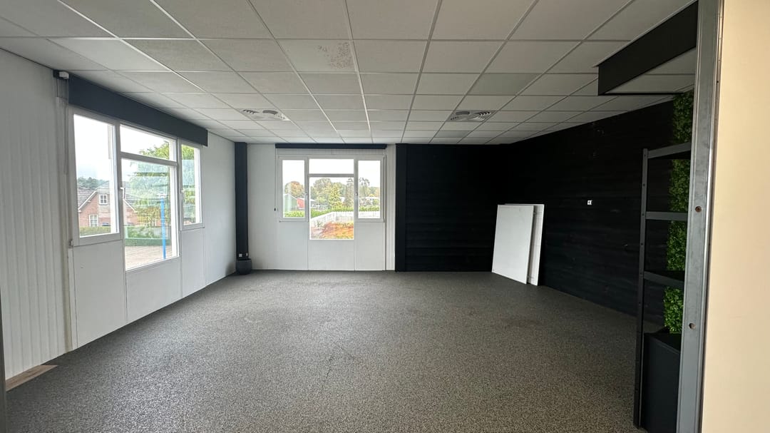 De verdieping bestaat uit twee ruime kantoorruimtes van respectievelijk circa 32 m² en 27 m² met een open verbinding, een aparte vergaderkamer van circa 20 m², een pantry en toiletvoorzieningen. Grote raampartijen zorgen voor veel natuurlijke lichtinval en een aangename werksfeer.
