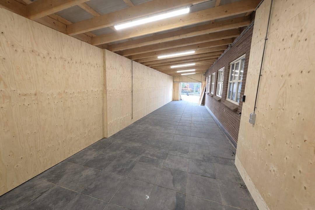 De degelijke bouwwijze is direct zichtbaar: uitgevoerd met spouwmuren en geïsoleerde voorzetwanden, wat bijdraagt aan een prettig binnenklimaat. Daarnaast is de werkplaats voorzien van een volledig vernieuwde elektrische installatie, een verlaagd plafond met een strakke afwerking en gestucte wanden en plafonds, wat de ruimte een moderne en verzorgde uitstraling geeft. Via de dubbele openslaande deuren is er directe toegang tot de achterplaats.