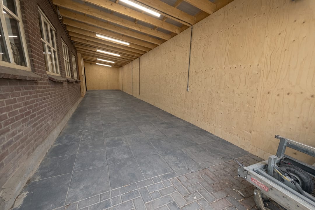 Er is nog een compleet vernieuwde aangebouwde garage van circa 14.8 x 3.25 meter aanwezig, welke geschikt is voor nog eens 3 auto’s. Deze ruimte is degelijk uitgevoerd en voorzien van onder andere dik geïsoleerde gevel- en dakbeplating, een stalen kanteldeur, LED-verlichting en een loopdeur aan de achterzijde.