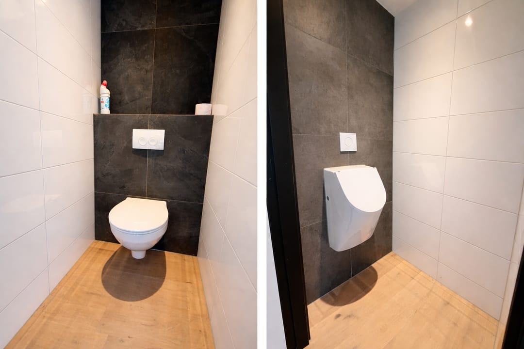 Op de verdieping bevinden zich een overloop en twee ruime, lichte en recent afgewerkte kantoor-/spreekkamers. Eén van deze ruimtes is voorzien van een dakkapel. Beide kamers beschikken over nieuwe vloeren en hoge plafonds met inbouwspots, wat zorgt voor een prettige en professionele werkomgeving.