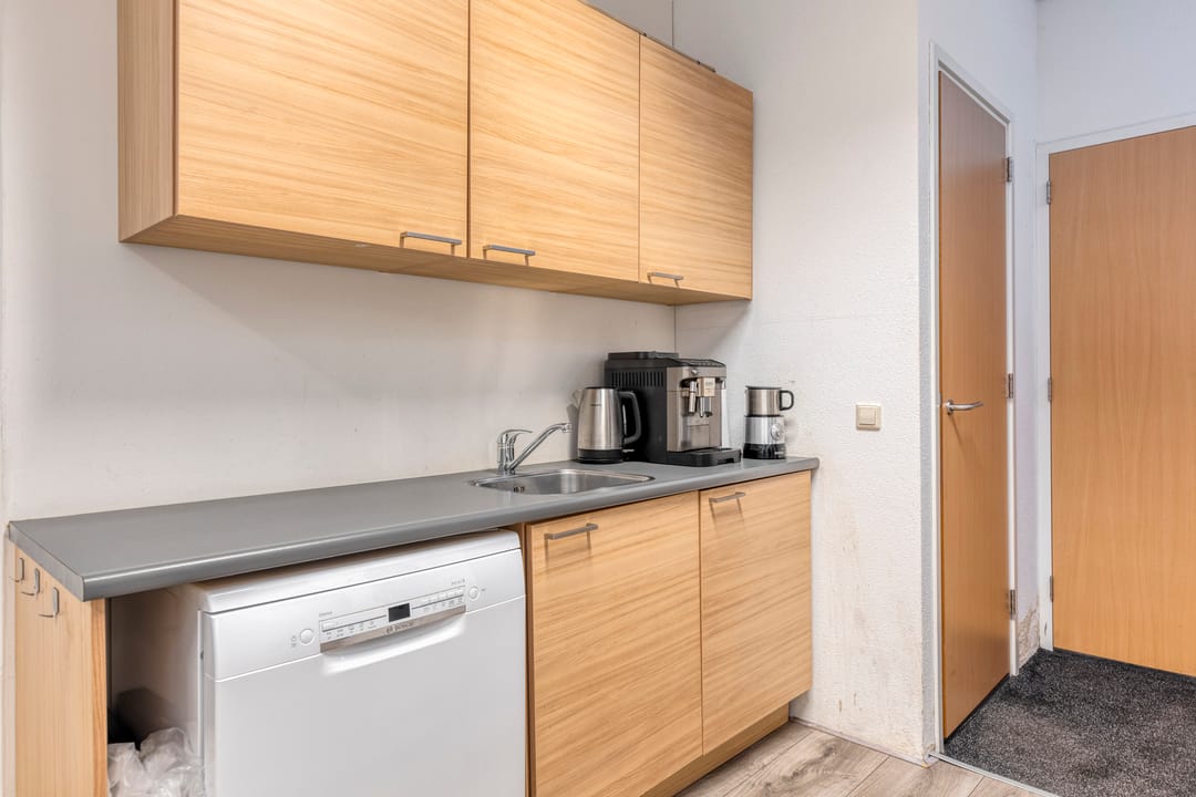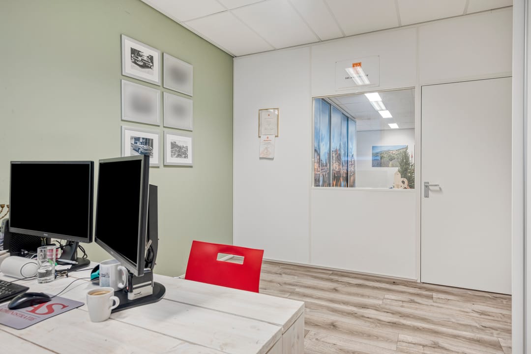 De kantoorruimte is in een gunstig ingedeeld met aparte ruim bemeten kantoren. Deze ruimte is volledig voorzien van een strak afgewerkte vloer. Pantry en toilet aanwezig in de kantoorruimte.