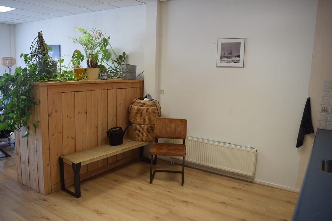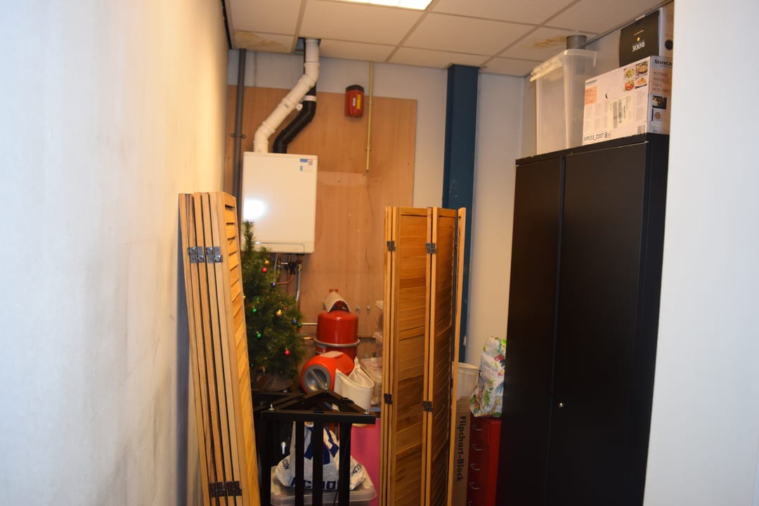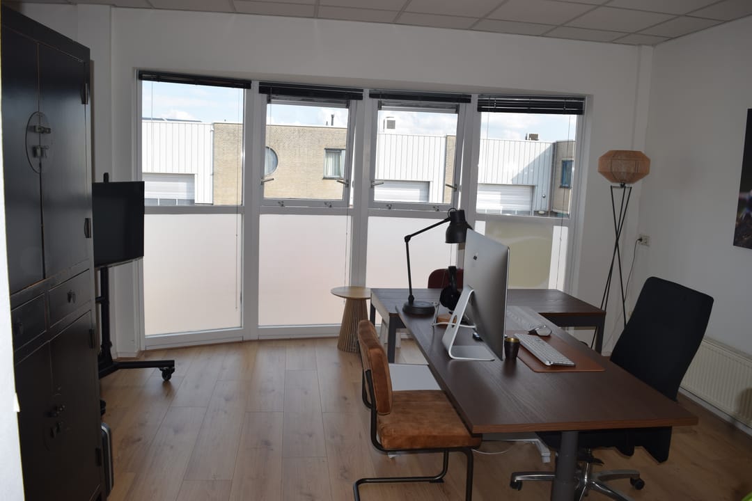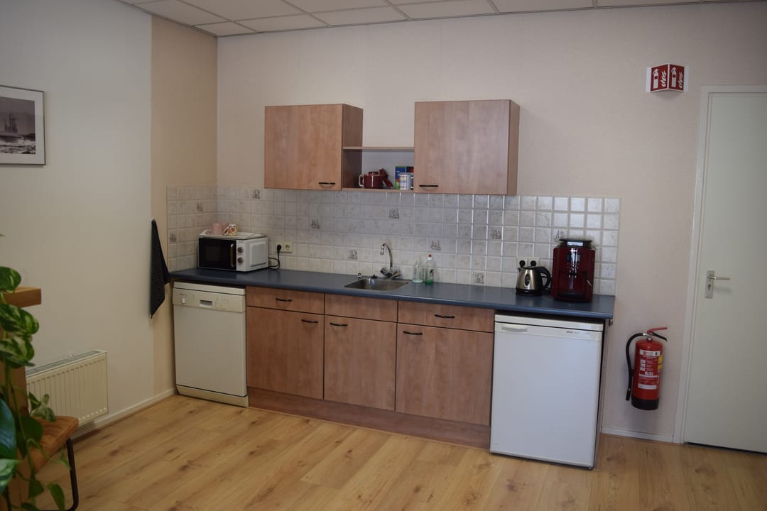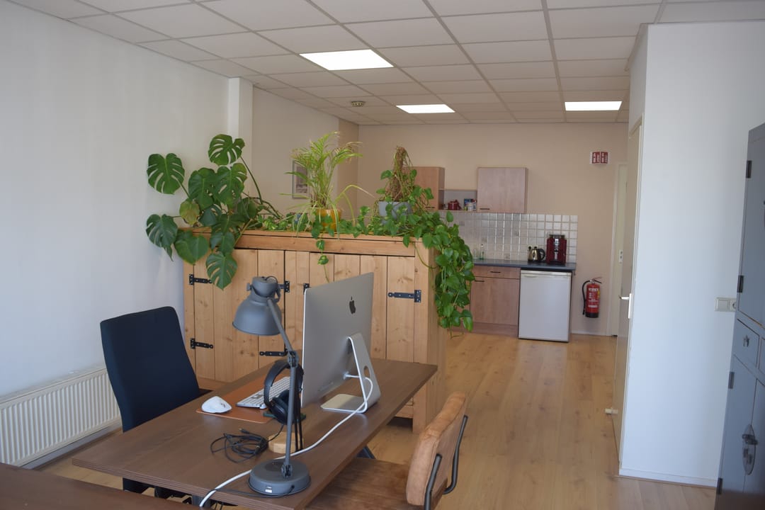 Ruime kantoorruimte ca. 50m2 voorzien van systeemplafond met LED verlichting en laminaat vloerafwerking. Ruime kitchenette met wasbak, vaatwasser, koelkast en voldoende bergruimte. Inpandige berging/archiefruimte gelegen aan de achterzijde en voorzien van c.v. combiketel (2022), toiletruimte met toilet en fontein.