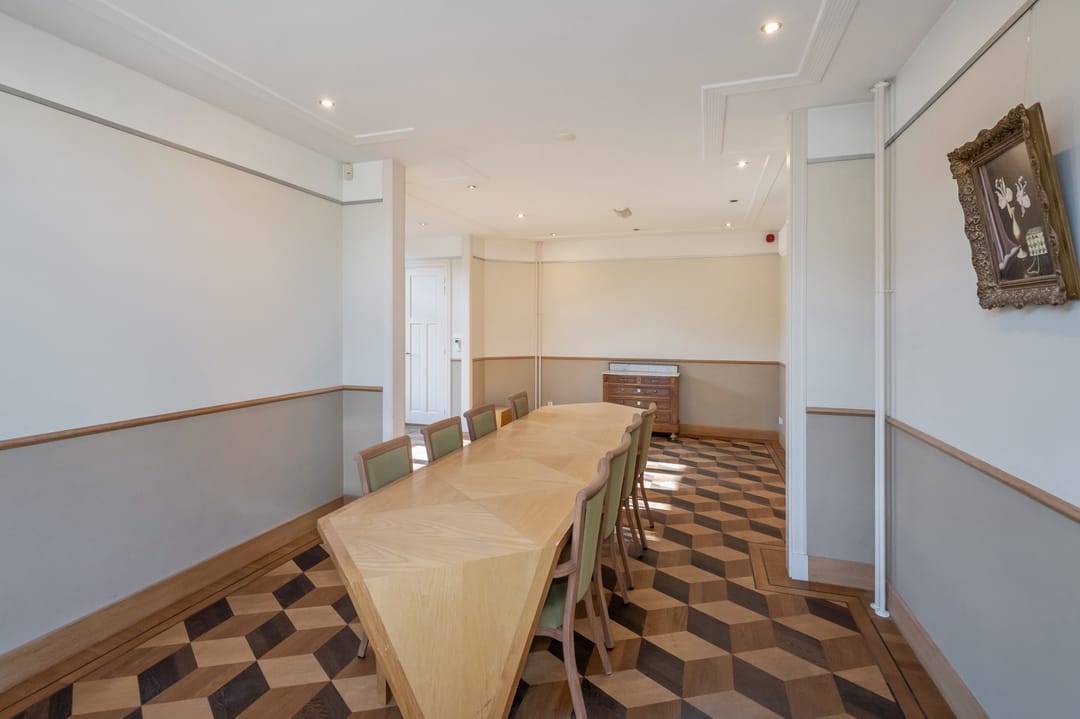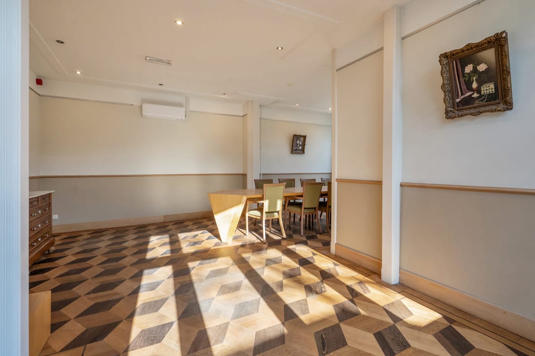 Bij binnenkomst valt direct de prachtige ontvangsthal op met een mooie receptie, een vast kastmeubel, een garderobe en keukentje dat elegant in het geheel is geïntegreerd. Het geeft meteen een gevoel van luxe en allure.