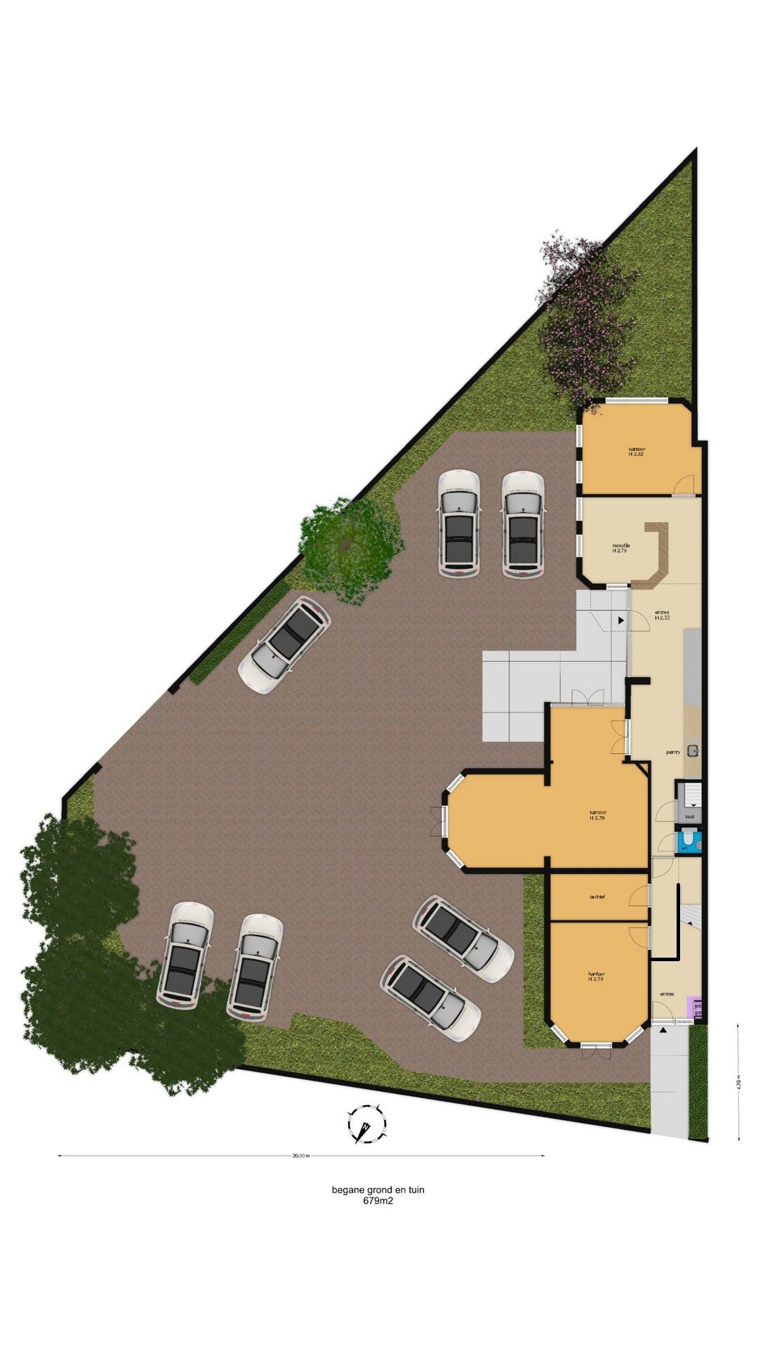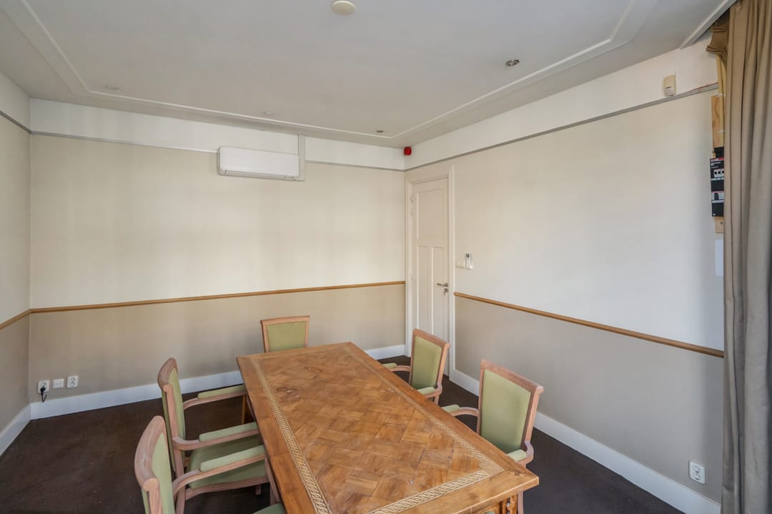 Het pand beschikt over drie royale kamers, die flexibel te gebruiken zijn als spreekkamers of kantoorruimtes, ieder voorzien van airconditioning voor optimaal comfort. Aan de linkerkant bevindt zich een spreekkamer, in het midden een royale kantoorruimte, en aan de achterzijde van de rechterkant nog een extra kantoor-/spreekkamer. Tussen de ruimtes is een handig tussenhok, perfect te gebruiken als kopieer- of archiefruimte.