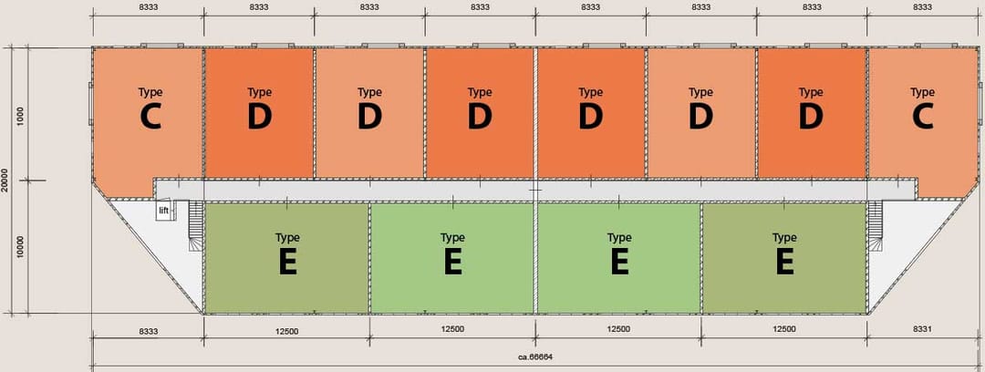 12 units op de verdieping (waarvan 2 hoekunits, 6 voorzijde en 4 achterzijde)
