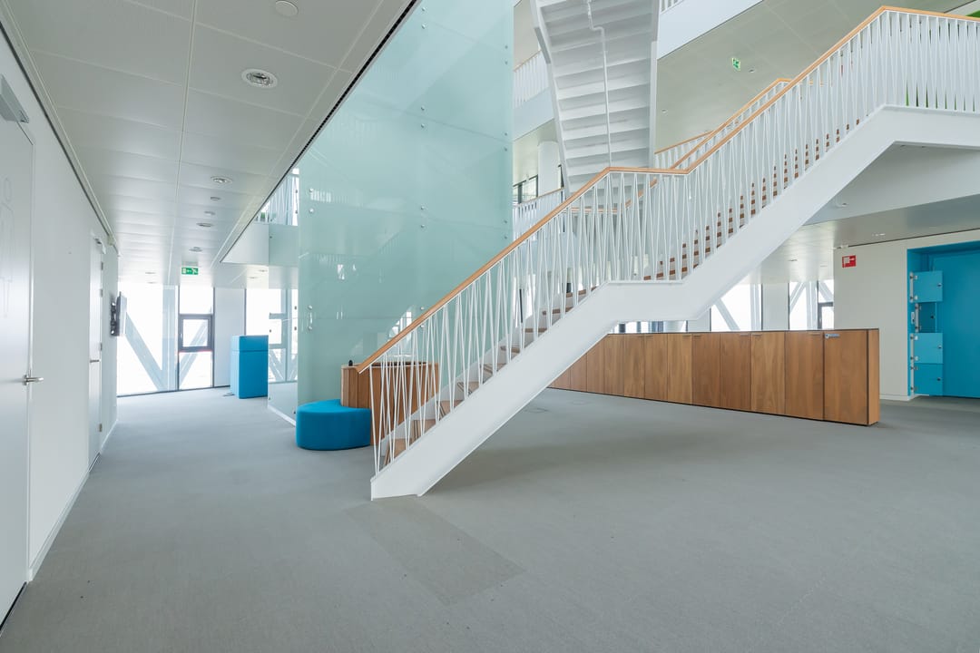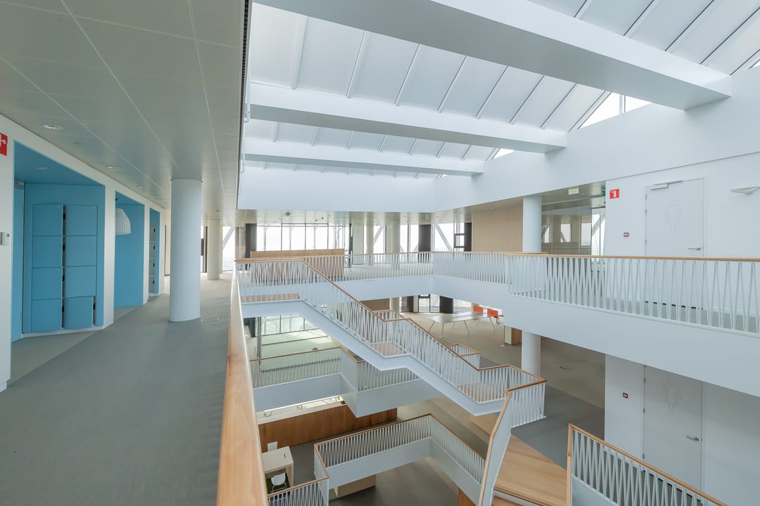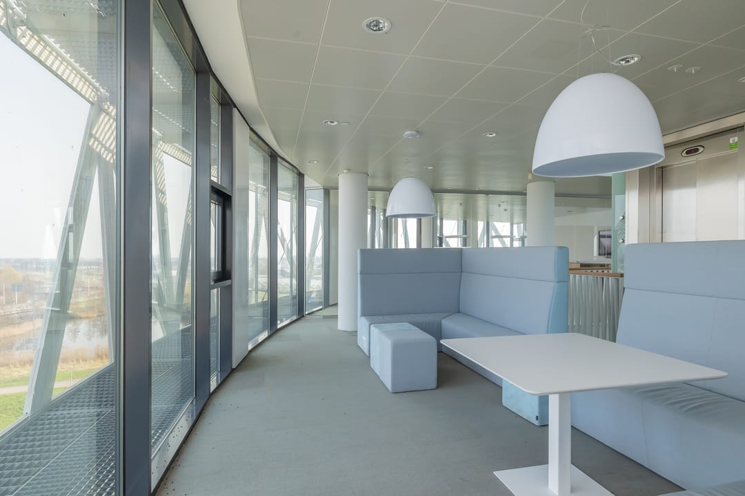 In dit inspirerende kantoor zijn diverse duurzame oplossingen verwerkt zoals een WKO systeem, PV-cellen, klimaatplafonds en een dubbele gevel hetgeen resulteert in het gunstige energielabel A.