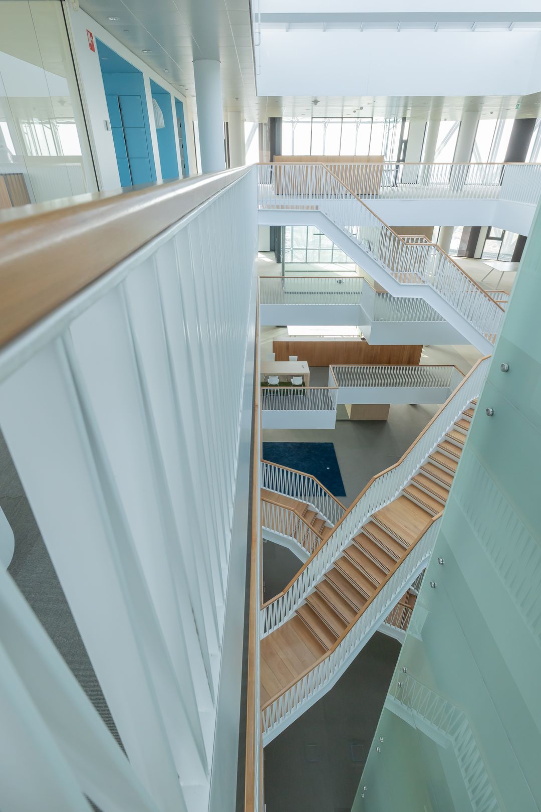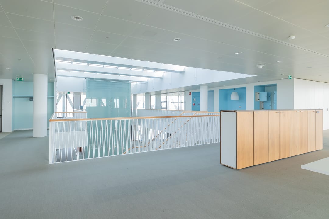 De hoogwaardig- en turn-key afgewerkte kantoorruimten zijn georganiseerd rond een centraal atrium hetgeen informele contacten tussen de medewerkers c.q. verschillende gebruikers stimuleert. Op verdieping -1 zijn een tweetal conferentieruimten -die ook tot 1 grote conferentieruimte samengevoegd kunnen worden- gelegen.