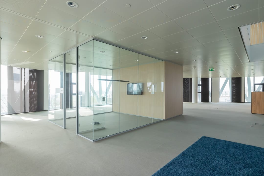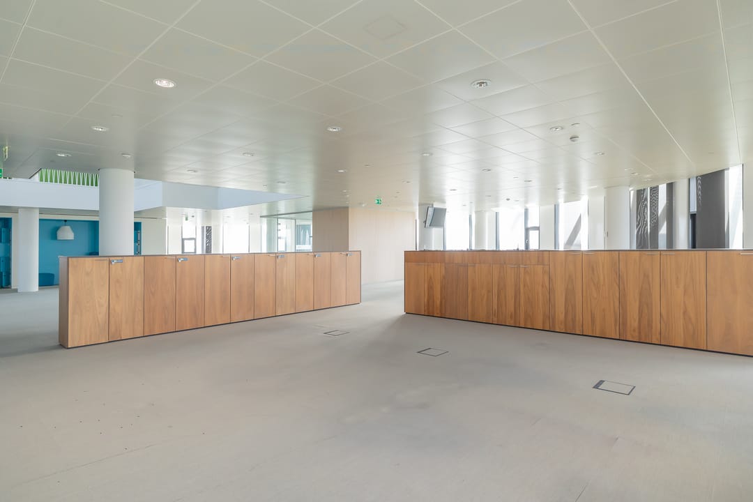 - Airconditioning, mechanische ventilatie, topkoeling, inbouwarmaturen, liften, te openen ramen, kabelgoten, systeemplafond, toilet, pantry, verwarming en kamerindeling