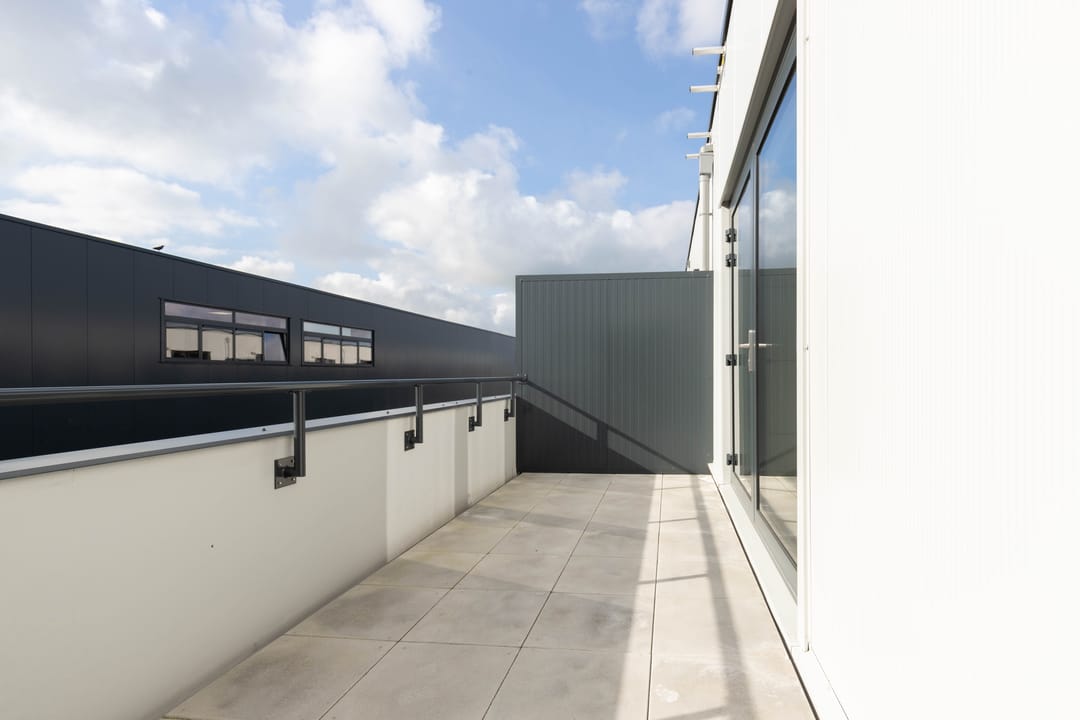 Moderne en zeer zuinige kantoorruimte van 57 m² met een buitenruimte van 13 m². De ruimte is turnkey opgeleverd en voorzien van een keukenblok, toiletruimte en airco.