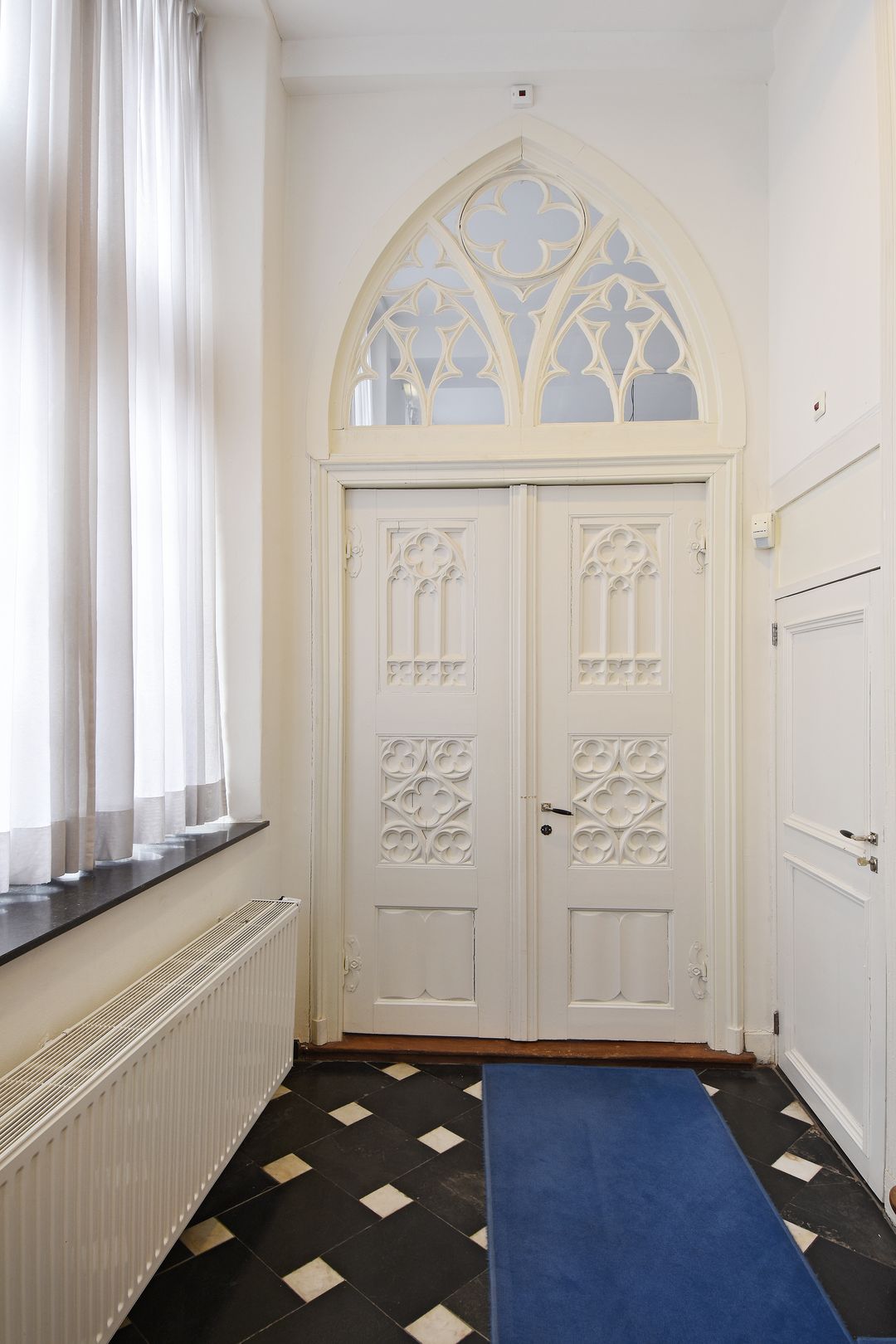Sfeervolle entree met karakteristieke uitstraling, hoge plafonds, uitstraling, uitstekend afgewerkte ruimten.