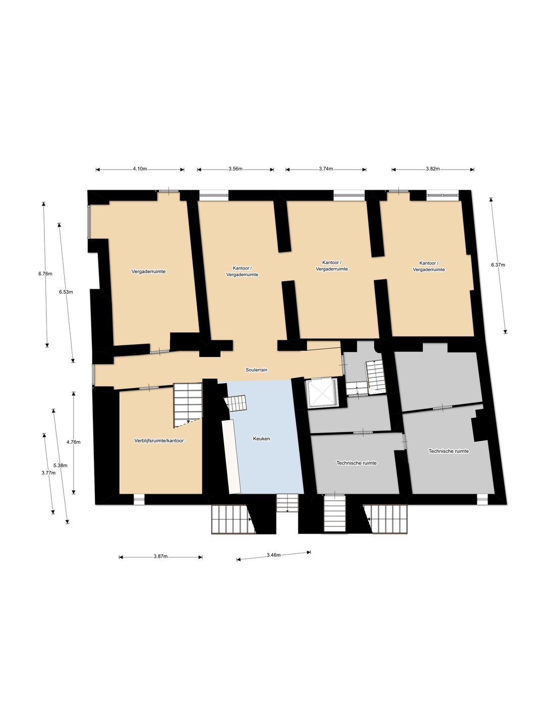 Het souterrain is met een lift bereikbaar en voorzien van een pantry. In de kelder zijn multifunctionele ruimtes aanwezig voor kantoor, vergaderruimte, muziekstudio, technische ruimte, serverruimte en opslag.