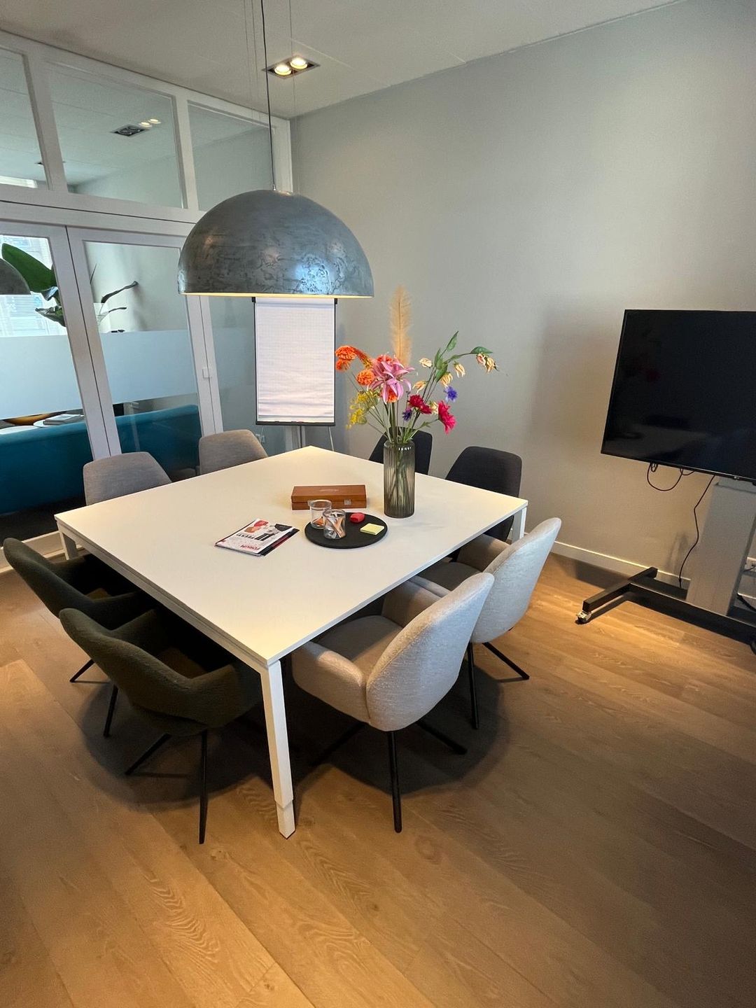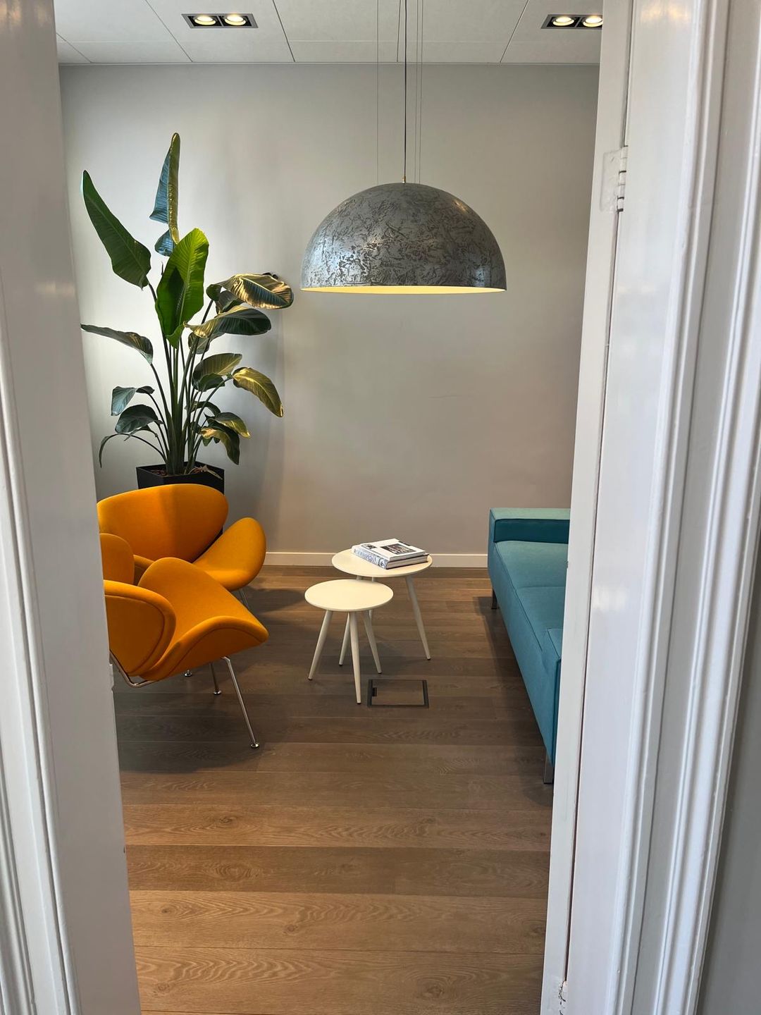 Entree/hal met ruime ontvangsthal, wachtruimte, twee praktijk-/kantoor-/vergaderruimtes, kantine en toiletgroep.