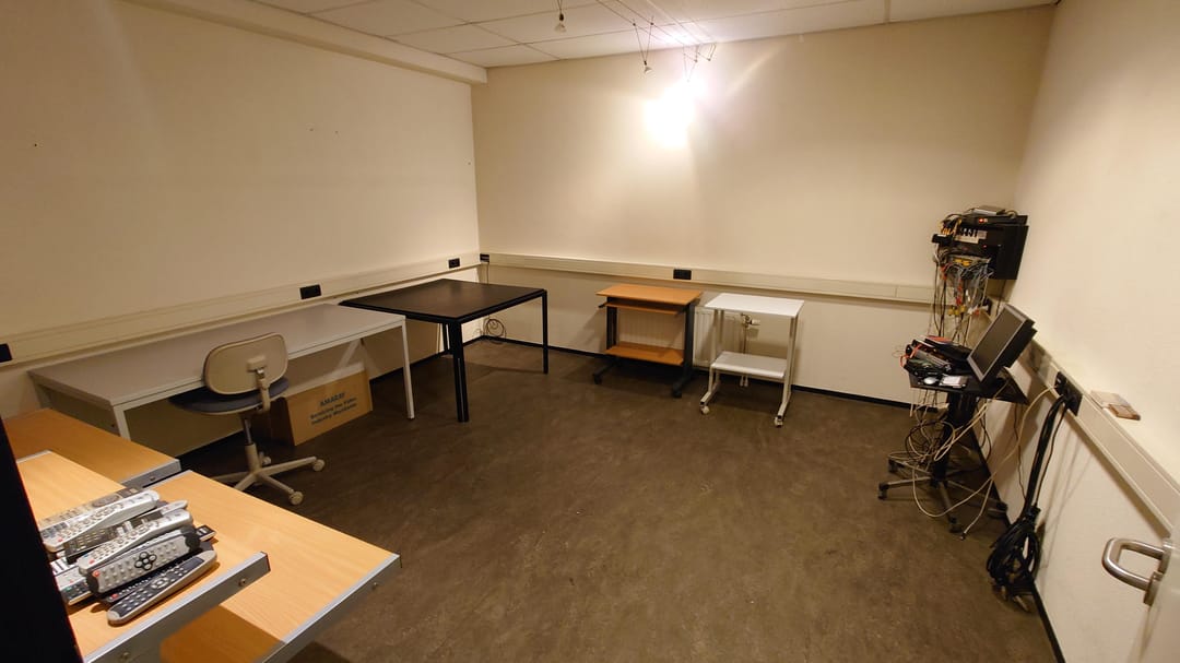 De super gladde epoxy vloer is perfect voor camerabewegingen, terwijl diverse kabelgoten naar alle ruimtes (40 cm breed, 5 cm hoog) optimale technische flexibiliteit bieden.