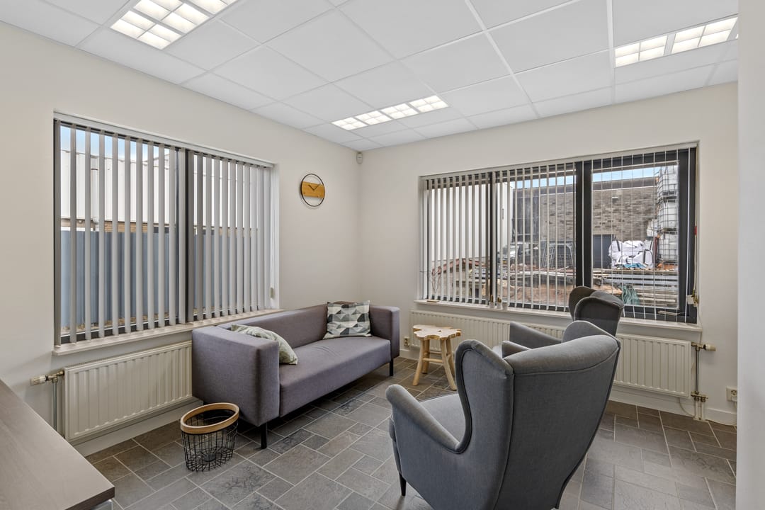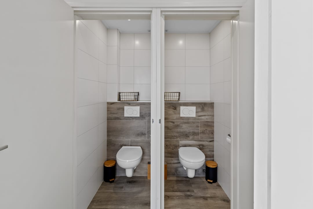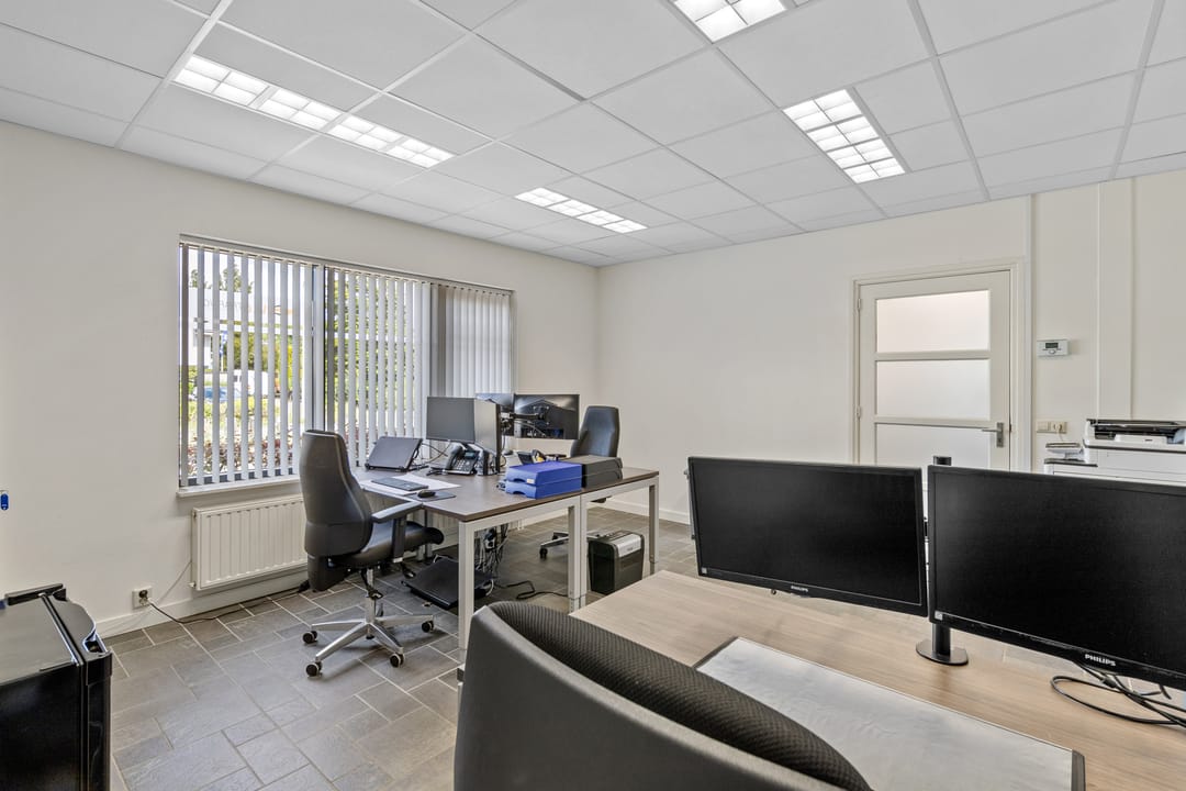 Entree met vaste bergkast, meterkast en toegang tot de diverse kantoorruimtes (totaal 4 incl. kantine). Vanuit de zijgang heeft men toegang tot de toiletgroep (2 separate toiletten) met wastafelmeubel.