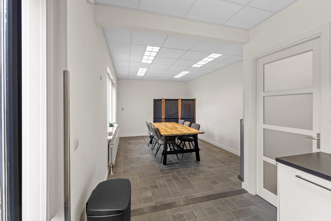 Alle ruimtes beschikken over grote raampartijen. De kantine is voorzien van een vaatwasser, combi oven/magnetron, diverse onder en bovenkasten en spoelbak.