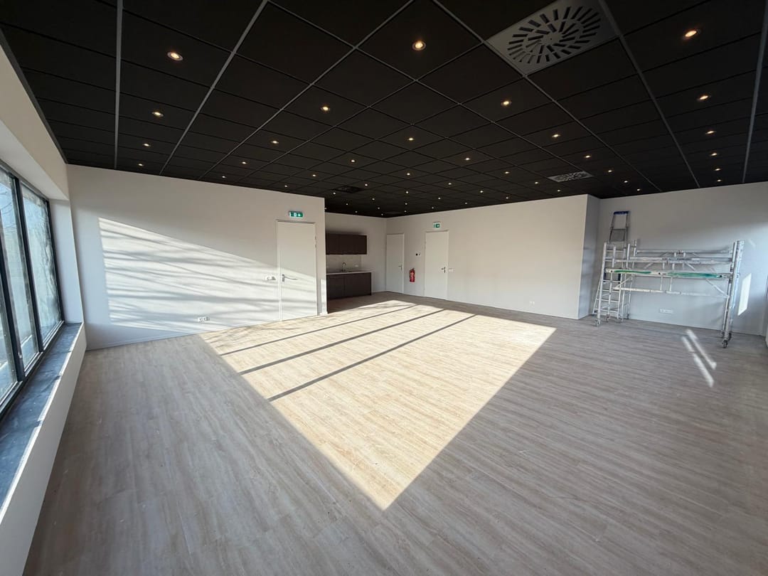 - Kantoorruimte voorzien van zwart systeemplafond met inbouwspots