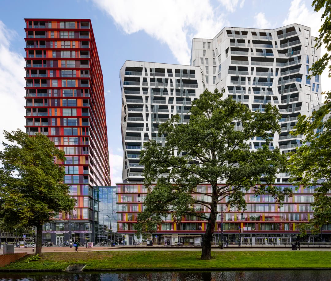 Op een strategische locatie in het Rotterdam Central District, op korte afstand van het Centraal Station van Rotterdam, bevindt zich het indrukwekkende kantoorgebouw Calypso. Dit in 2013 opgeleverde gebouw onderscheidt zich door zijn karakteristieke architectuur met opvallende rode en oranje kleurelementen. Het multifunctionele complex omvat 4.800 m² hoogwaardige kantoorruimte op de onderste verdiepingen, 407 appartementen in de hoogbouw en beschikt over een ruime parkeergarage. De naam "Calypso" eert de historische bioscoop die voorheen deze prominente plek in de stad sierde. Het gebouw vormt een onmiskenbaar architectonisch accent in de skyline van Rotterdam.