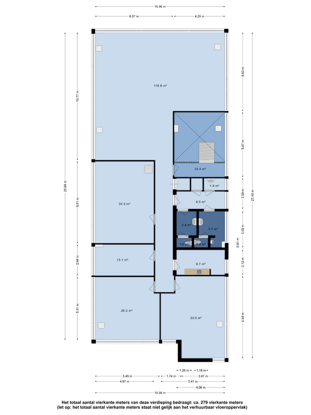 Ca. 260 m² kantoorruimte gelegen op de eerste verdieping;