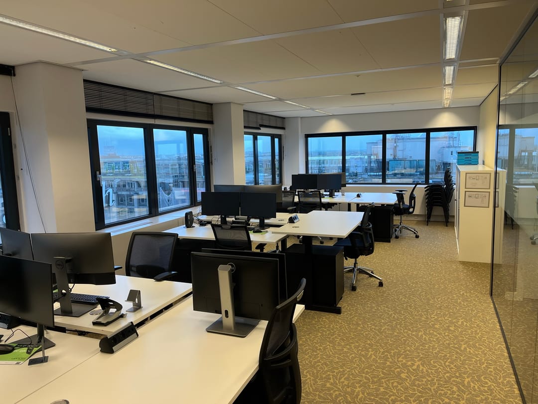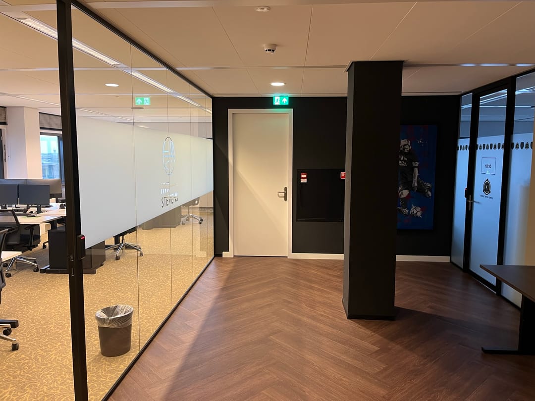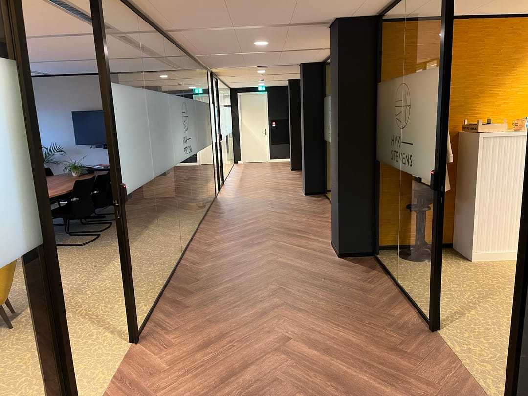 • bestaande vloerbedekking en hoogwaardige scheidingswanden grotendeels opgebouwd met glas *;
