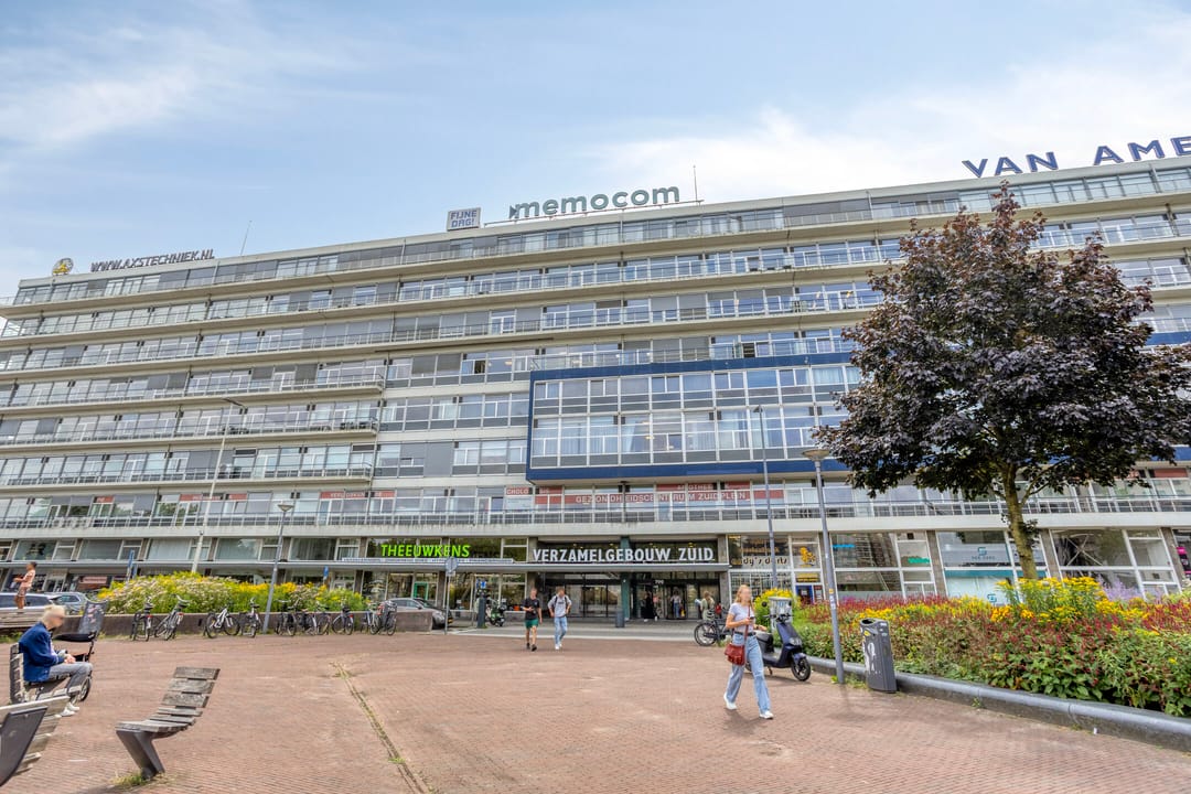 Het Verzamelgebouw Zuid bevindt zich op een prominente locatie, omringd door diverse voorzieningen zoals winkels en horecagelegenheden.