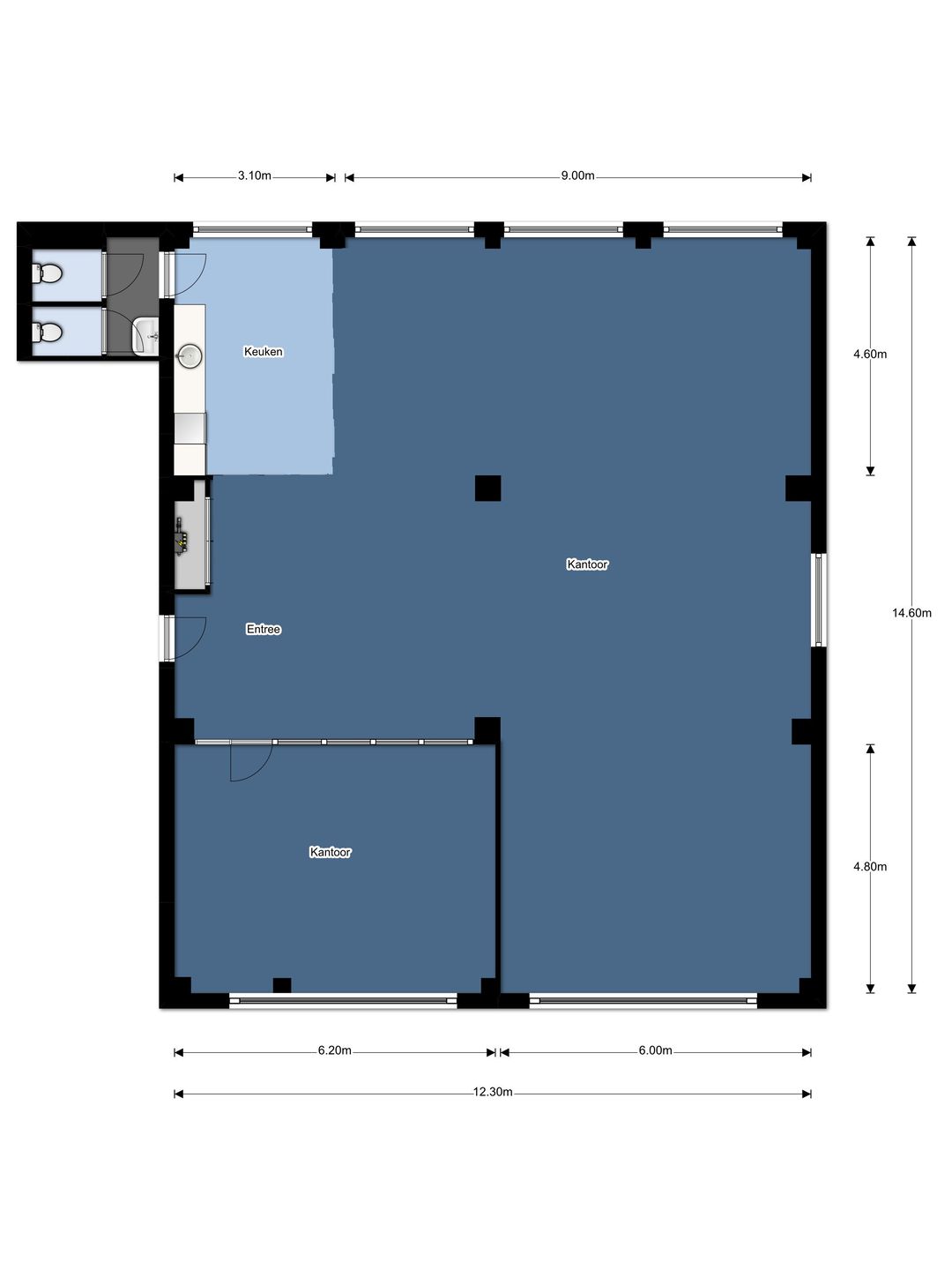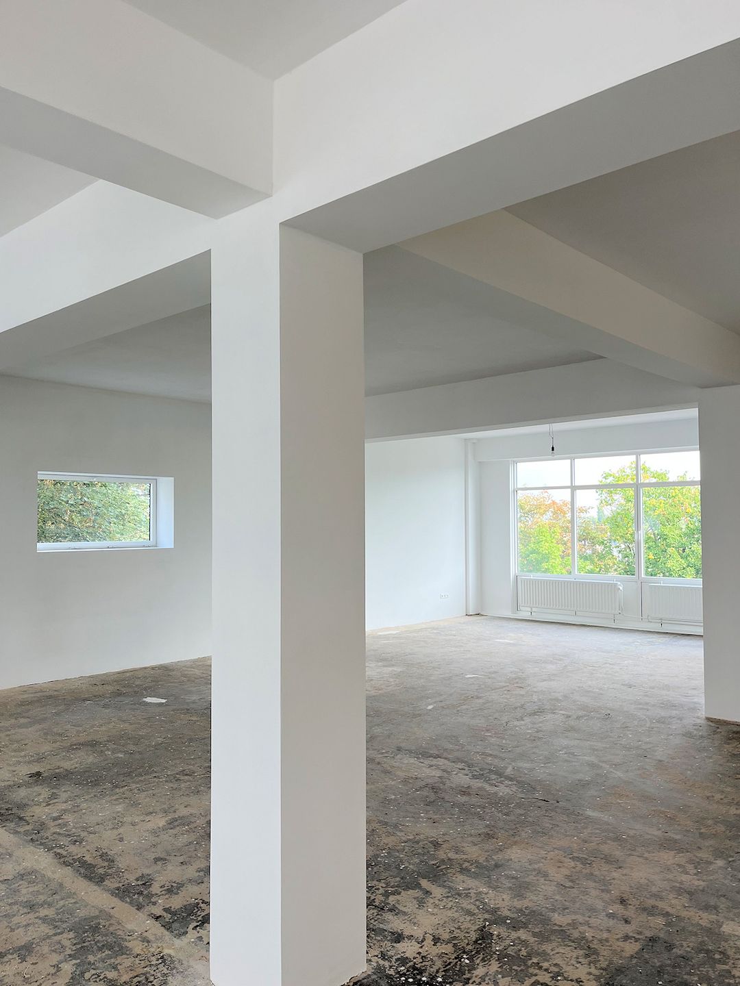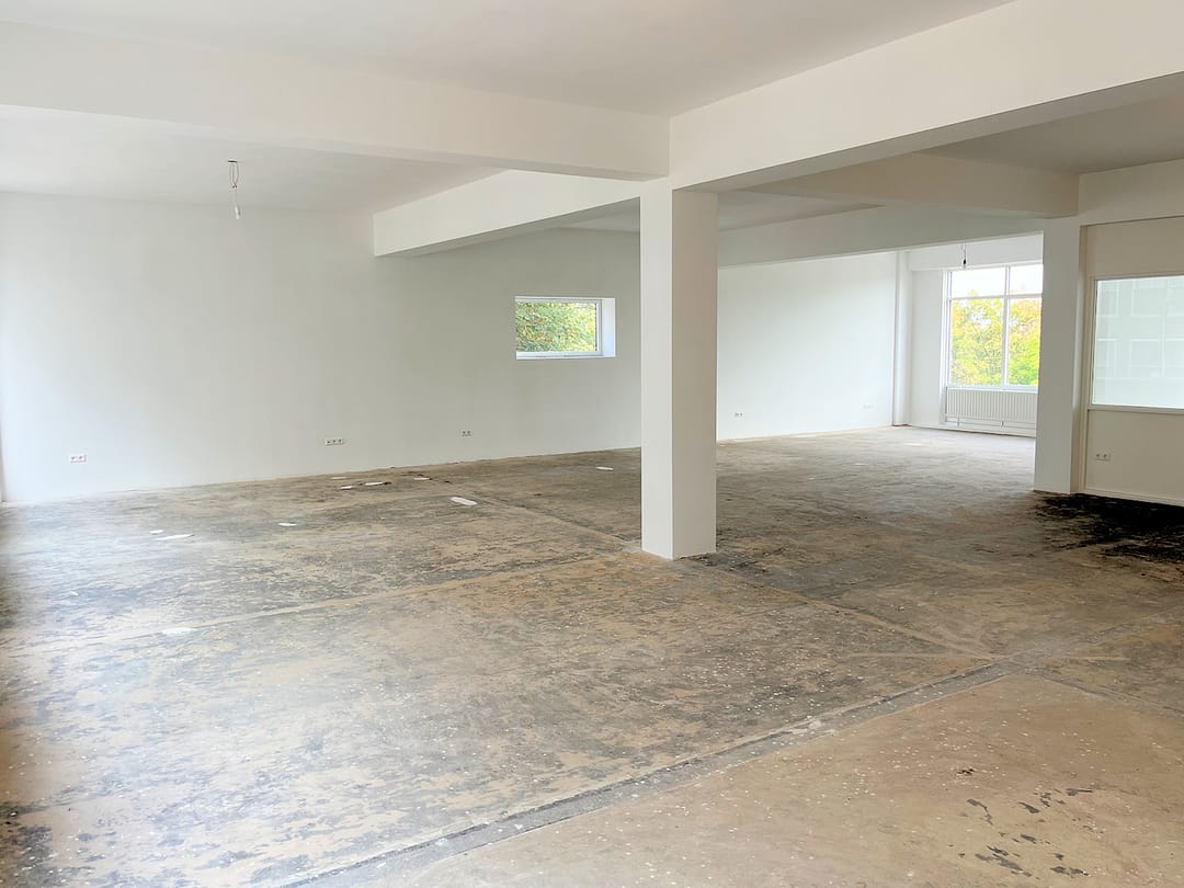 - vloerafwerking naar keuze nieuwe huurder (stelpost € 50,- p.m2, excl. BTW, géén gietvloer..)
