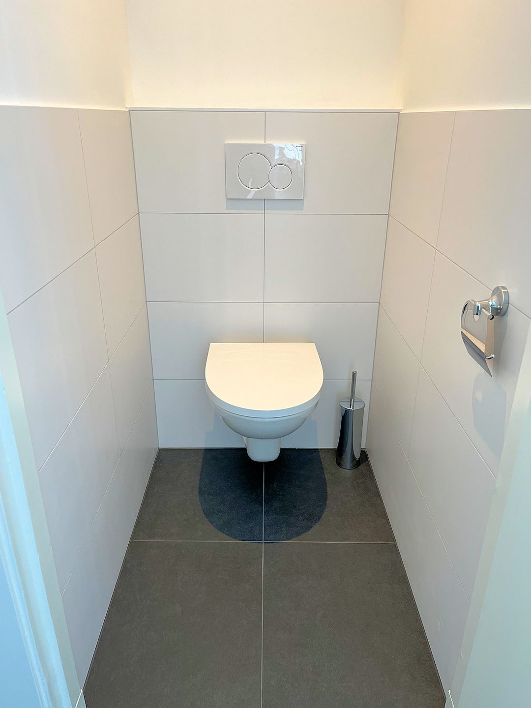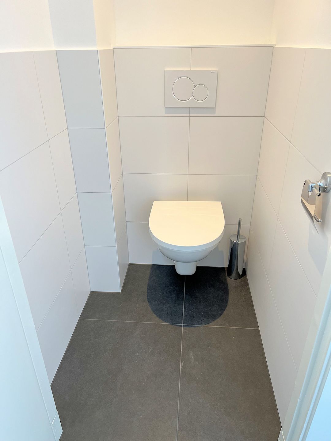 vernieuwde toiletunit met wastafel met meubel en verlichting en gescheiden heren- en damestoilet met hangclosetten, kamerindeling naar wens van nieuwe huurder, klein balkonnetje aan de voorgevel
