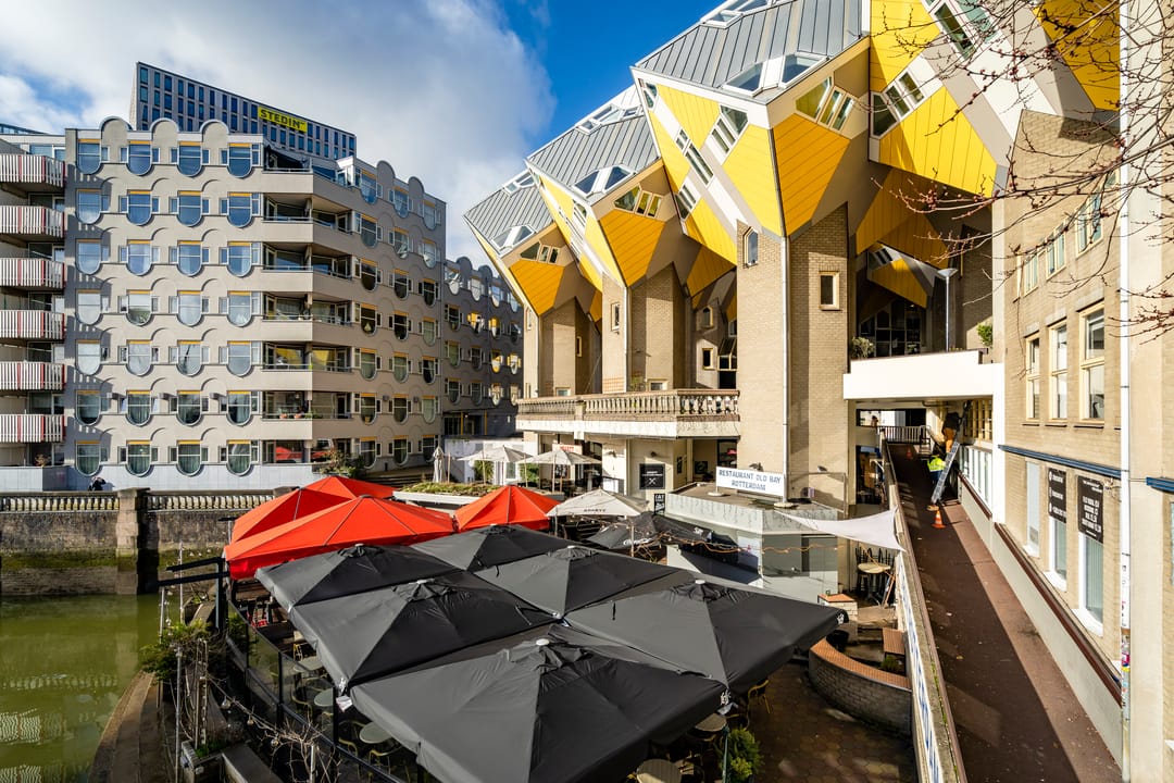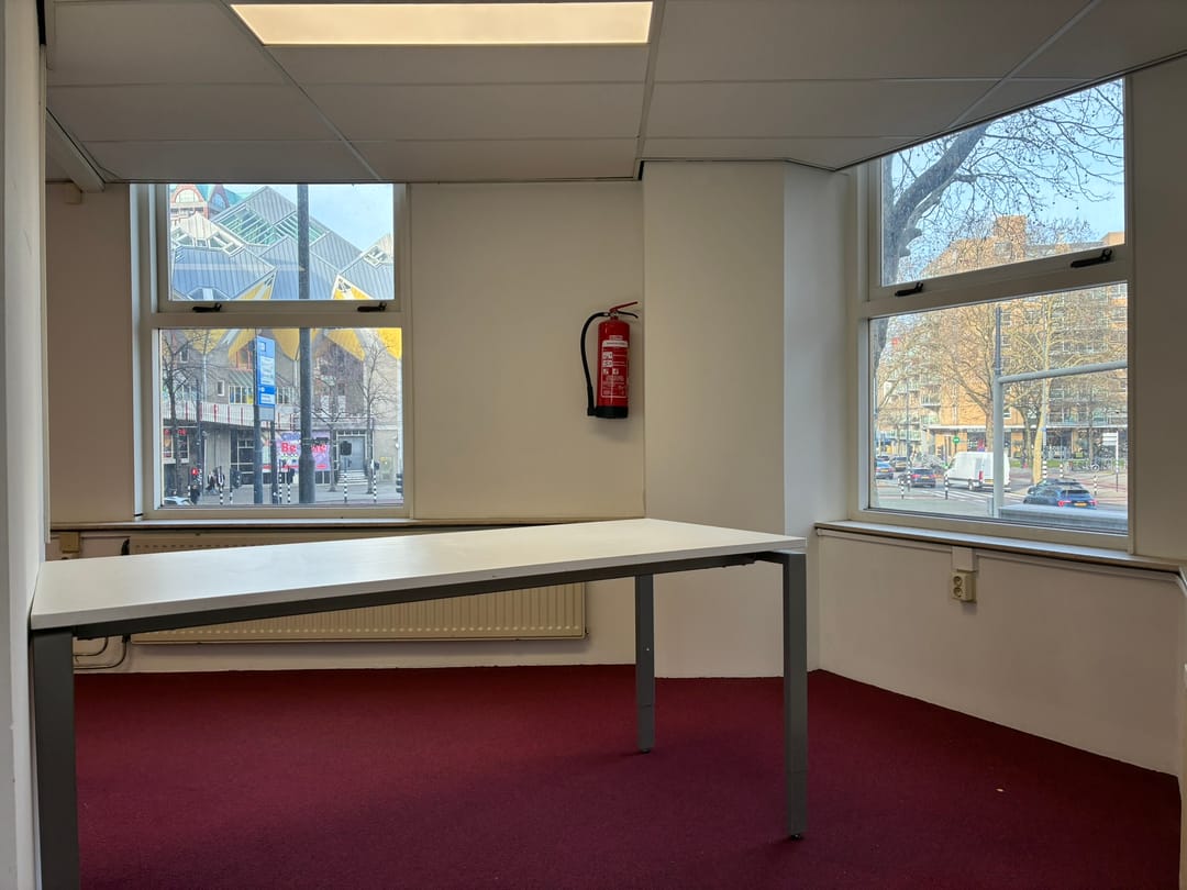 Op de eerste verdieping onder het iconische kubuswoningcomplex zijn nog twee kantoorunits beschikbaar voor verhuur. De locatie is fantastisch, met in de directe omgeving de Oude Haven, Station Blaak, de Markthal en de weekmarkt. De twee kantoorunits grenzen aan een gemeenschappelijke entreehal, waardoor ze desgewenst ook uitstekend gezamenlijk te gebruiken zijn.