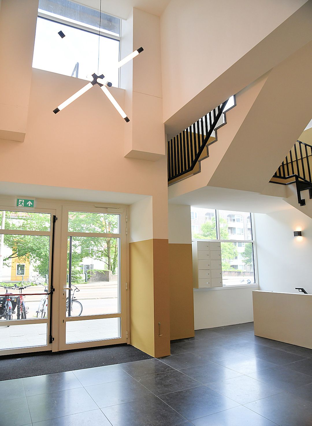 afgesloten centrale entree met brievenbussen en videofoon, grandioze hall met open vide en fraaie verlichting, extra ruime goederen/personenlift naar...