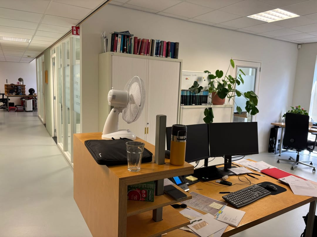 Het pand beschikt momenteel over drie kamers, een wachtruimte, een grote zaal geschikt voor administratie en personeel, een keuken/kantine en twee toiletruimtes. Deze indeling maakt de kantoorruimte geschikt voor uiteenlopende bedrijfsactiviteiten en biedt een efficiënte en overzichtelijke werkstructuur. Dankzij de verzorgde afwerking en de rustige omgeving is het een prettige en professionele werkplek.