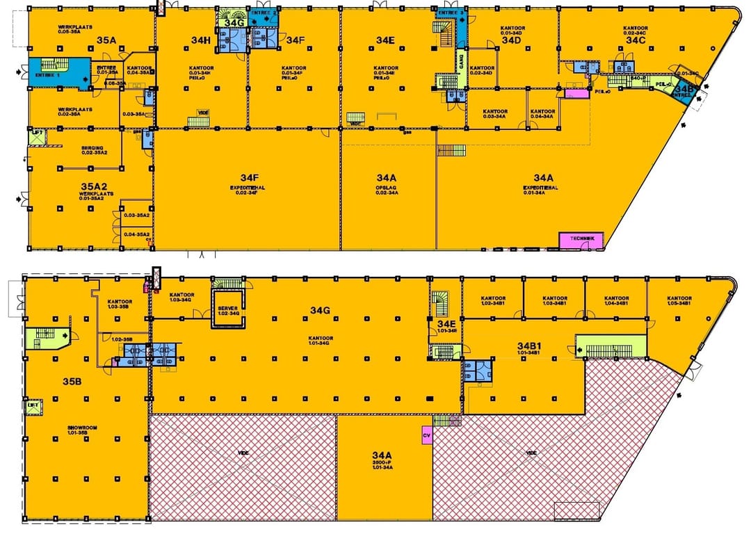 Servicekosten : kantoor achter : € 37,50 per m² per jaar excl. BTW, 34A: nader te bepalen