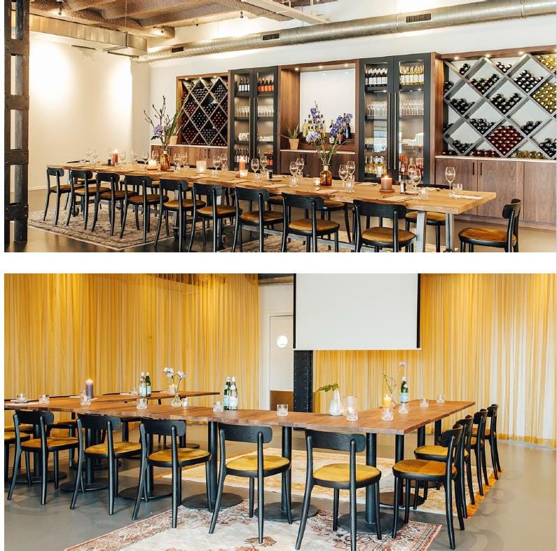 Er zijn twee verschillende zalen te boeken. Zaal 1 biedt ruimte voor 20 personen en zaal 2 voor 14 personen. Beiden zijn voorzien van een scherm en audio.