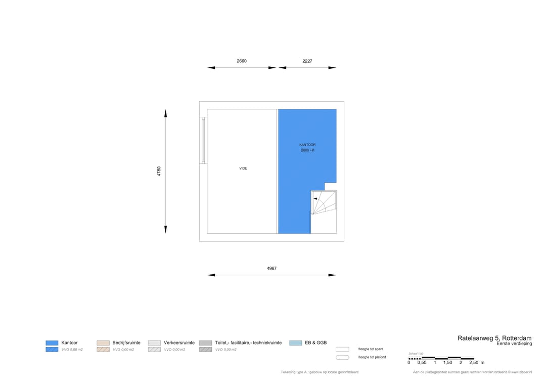 - vrije hoogte op de entresolvloer ca. 2,50 meter.