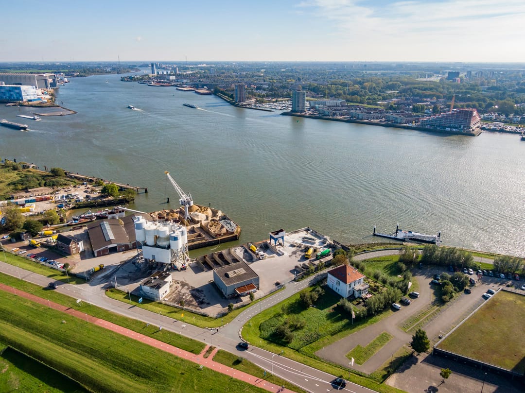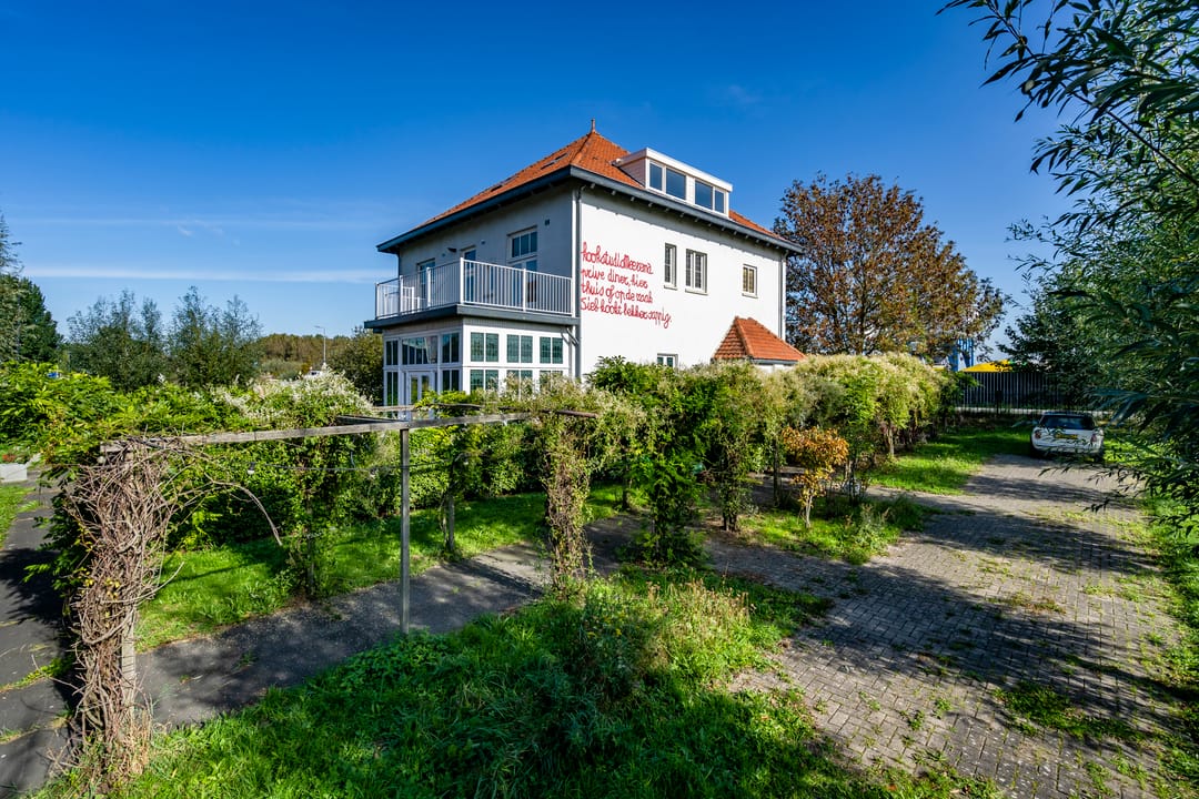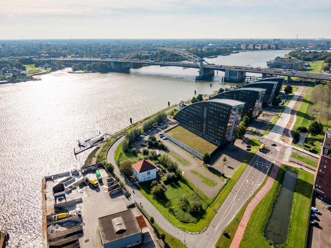 De villa ligt aan de rand van bedrijvenpark Rivium, direct naast restaurant Het Zalmhuis, en biedt een uniek uitzicht over de Nieuwe Maas en de Van Brienenoordbrug.