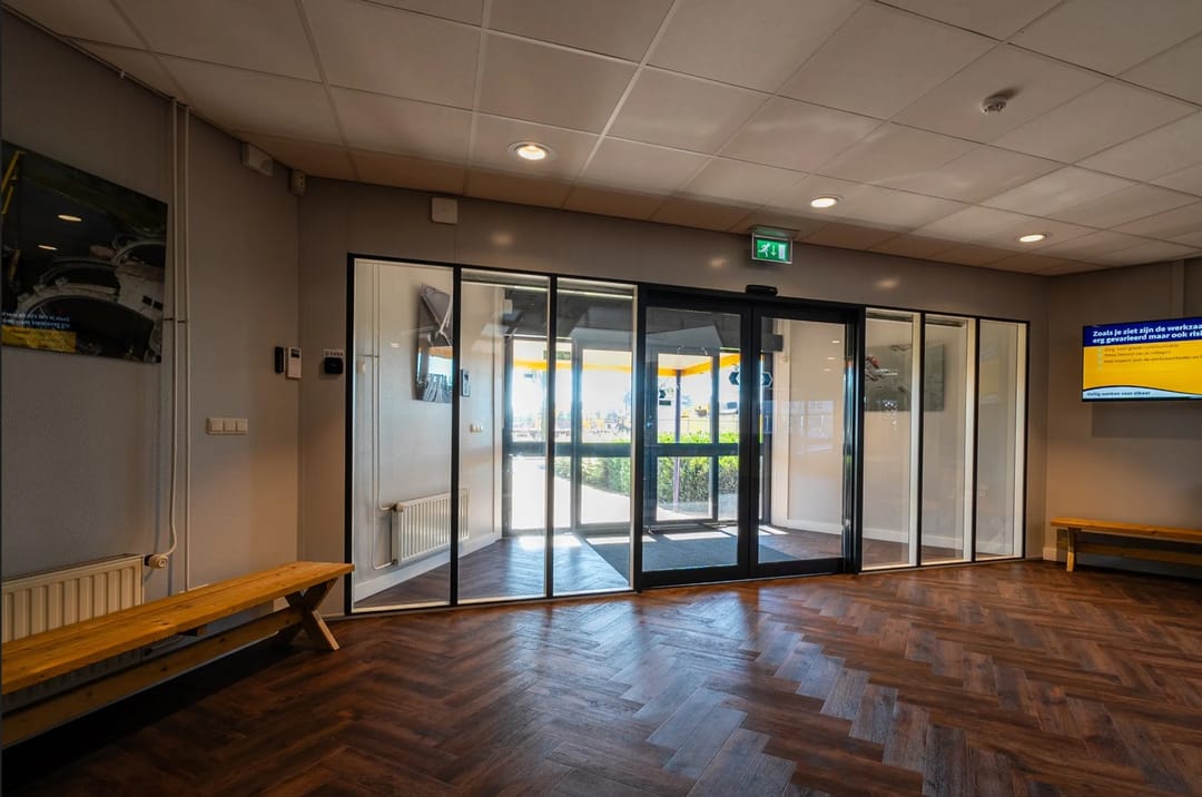 - Entree automatische schuifdeuren voorzien van intercominstallatie.