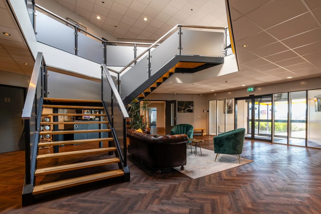 - Receptie in het atrium met trap naar de eerste verdieping;