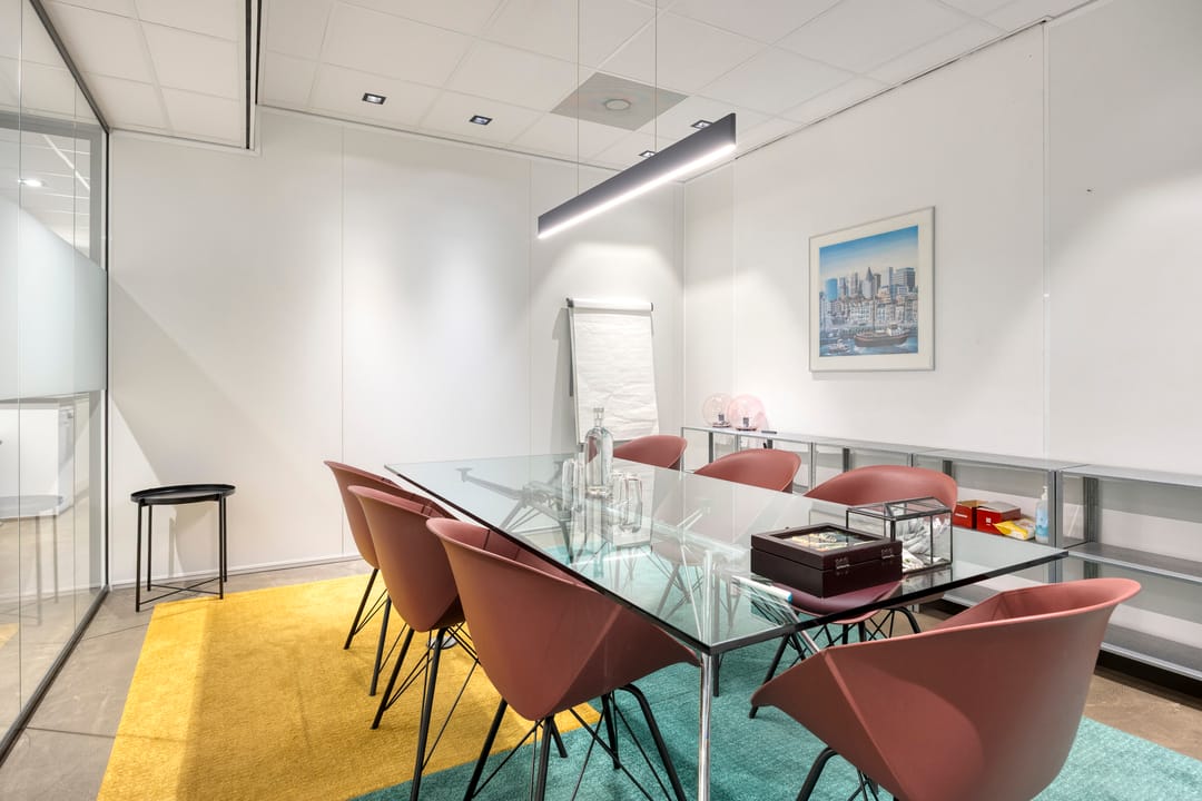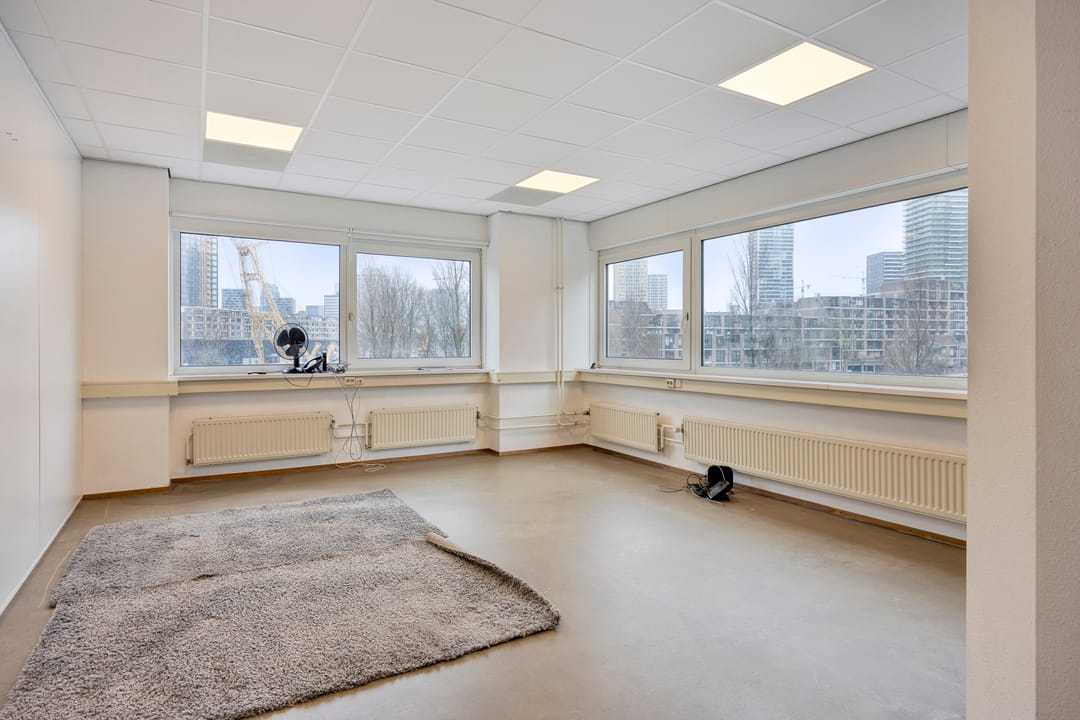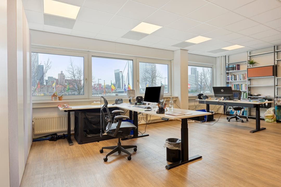 De kantoorruimte wordt opgeleverd inclusief inbouwpakket (exclusief meubilair) en beschikt over een functionele en efficiënte indeling met diverse spreekkamers, kantoortuinen en overlegmogelijkheden. De grote raampartijen rondom zorgen voor een uitzonderlijke daglichttoetreding en bieden een panoramisch uitzicht over de Nieuwe Maas en de Leuvehaven. Dit uitzicht vormt een onderscheidend element en draagt bij aan een inspirerende werkomgeving voor medewerkers en bezoekers.