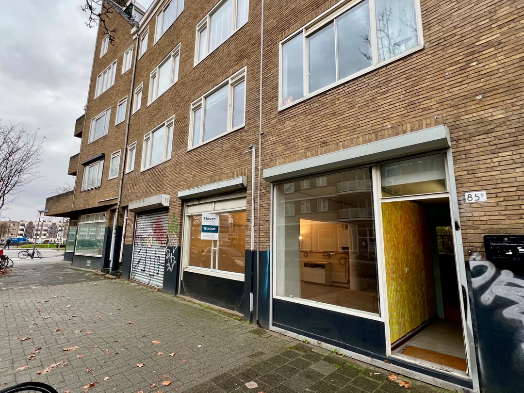 De (rechter) ruimte op de begane grond op huisnummer 85B meet 76 m2. Onder deze ruimte bevindt zich een kelder van 72 m2. Deze ruimte is voorzien van een rolluik. De toegang tot de kelderruimte is middels een wenteltrap aan de voorzijde.