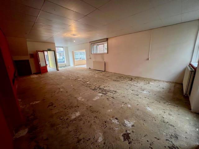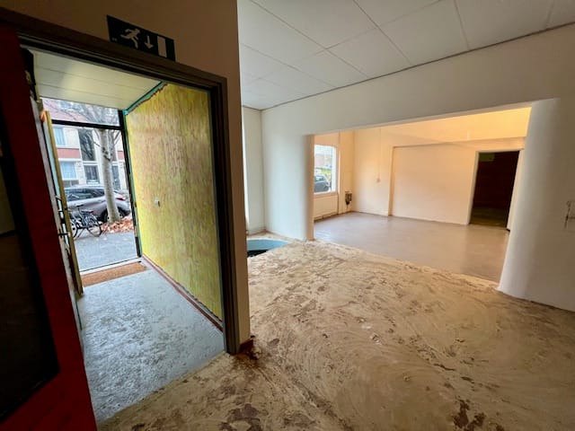 Door de speelse indeling, de brede raamkozijnen aan de voorzijde en tevens daglichttoetreding vanaf de achterzijde betreft dit een mooie bedrijfs-/kantoorruimte.
