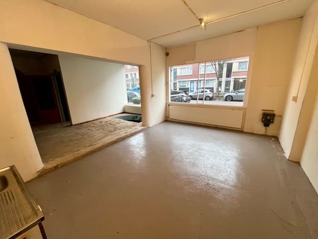 De (linker) ruimte op de begane grond op huisnummer 87A betreft een dubbele ruimte van 43 m2. Onder deze ruimte is geen kelder gelegen. Het is een dubbele ruimte met links een overheaddeur t.b.v. desgewenst parkeren van een auto en rechts een raamkozijn met een rolluik. Nummer 87A beschikt over een kleine pantry.