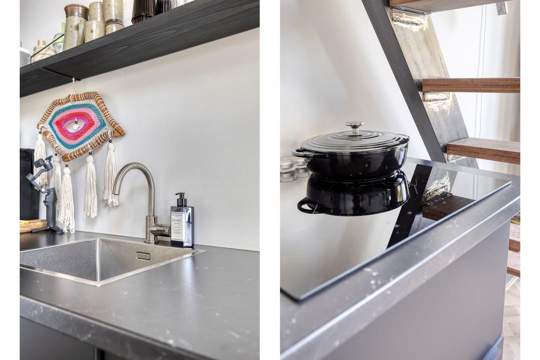 - Inbouwarmaturen, systeemplafond, toilet en pantry