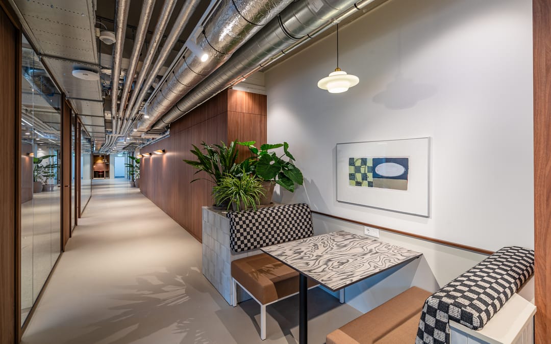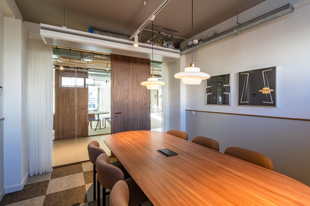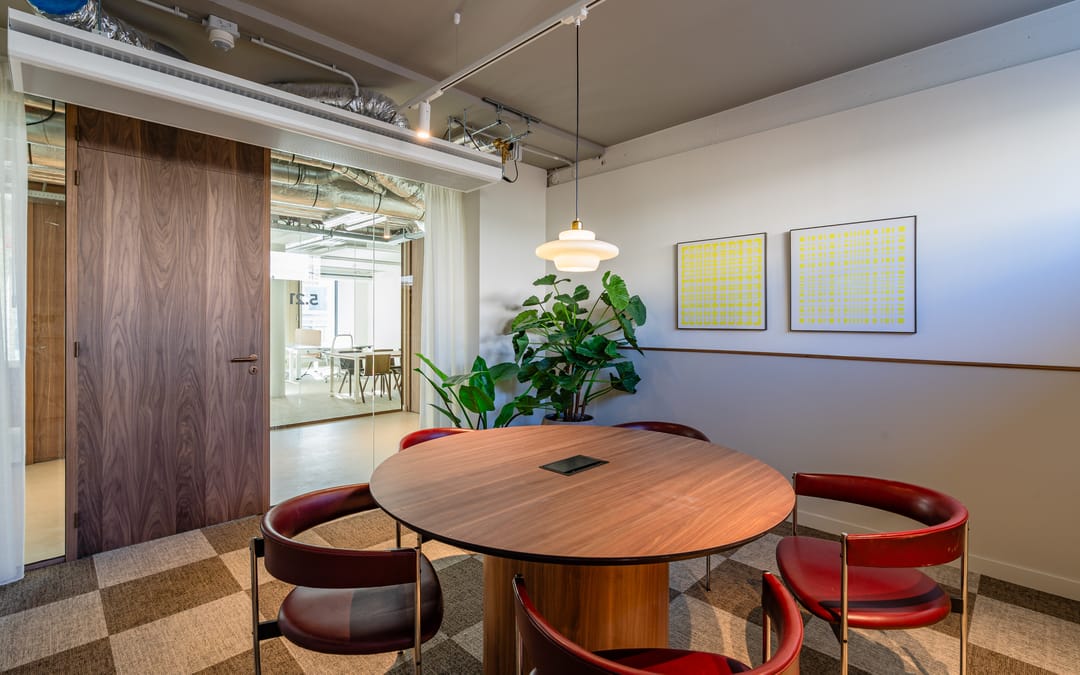 - Kantoorruimten inclusief hoogwaardig design meubilair (zit-sta bureaus inclusief ergonomische stoelen) en opbergkast;