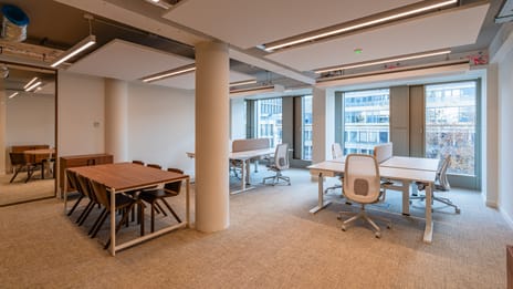 - Kantoorruimten inclusief hoogwaardig design meubilair (zit-sta bureaus inclusief ergonomische stoelen) en opbergkast;