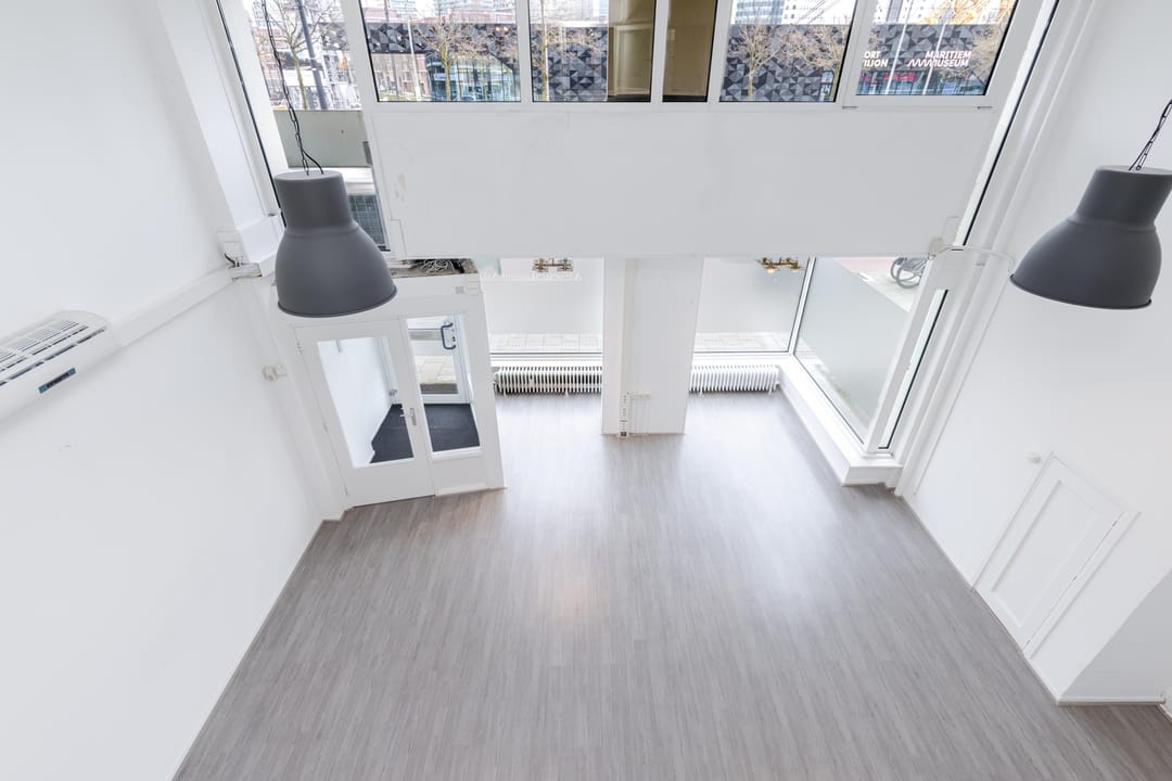 Op loopafstand van deze ruimte bevindt zich de gezellige Witte de Withstraat met een diversiteit aan gezellige restaurants, cafe’s, uitgaansgelegenheden en winkels. Met de watertaxi kan binnen een paar minuten de Kop van Zuid bereikt worden met onder andere het Nieuwe Luxor theater, bioscoop Lantaarn Venster en Hotel New York.