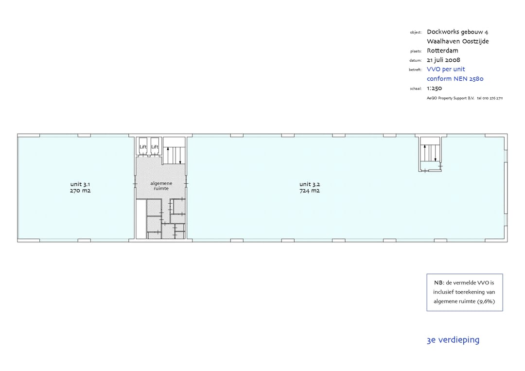 DockWorks IV past een ieder vanwege de hoge mate van flexibiliteit die de gebouwen bieden. Het gebouw omvat circa 6.000 m² verhuurbaar vloeroppervlak verdeeld over zeven verdiepingen waarbij momenteel 1 zeer fraaie, uitermate hoogwaardig afgewerkte verdieping van 994 m² met vrij uitzicht over de Waalhaven gelegen op de 3e verdieping beschikbaar is. De verdieping is verdeeld in 2 vleugels van respectievelijk 724 m² en 270 m² verhuurbaar vloeroppervlak. De kantoorruimte wordt geheel modern ingericht opgeleverd met onder andere open space werkplekken, diverse vergaderkamers, pantry- lunchruimte en boardroom. Direct instapklaar gereed voor gebruik. Bij de etage behoren 21 op naam gestelde parkeerplaatsen, waarvan er 12 zijn voorzien van een laadpaal. Deze worden ter overname aangeboden.