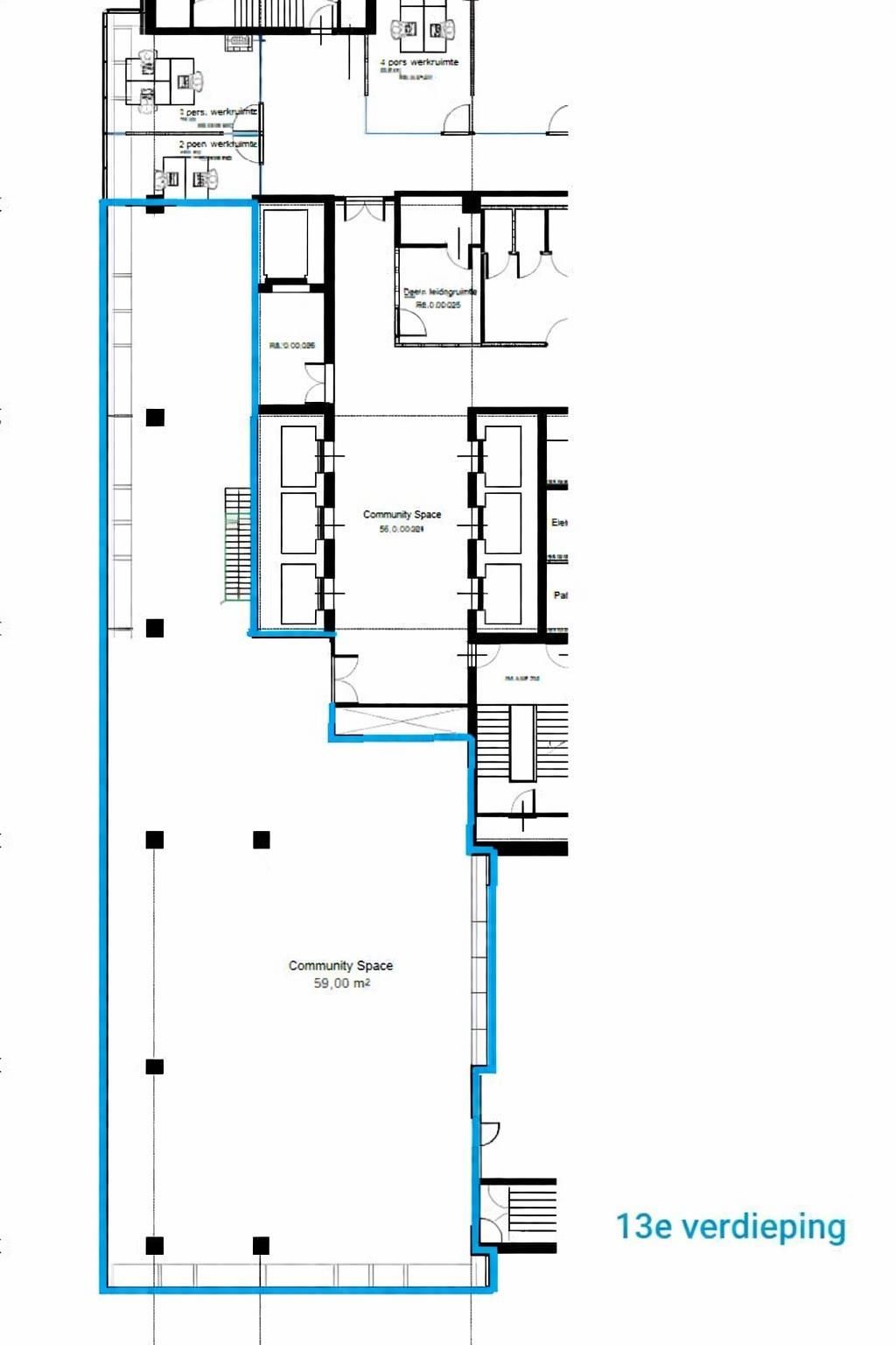 • 13e verdieping circa 170,2 m² netto kantoorruimte